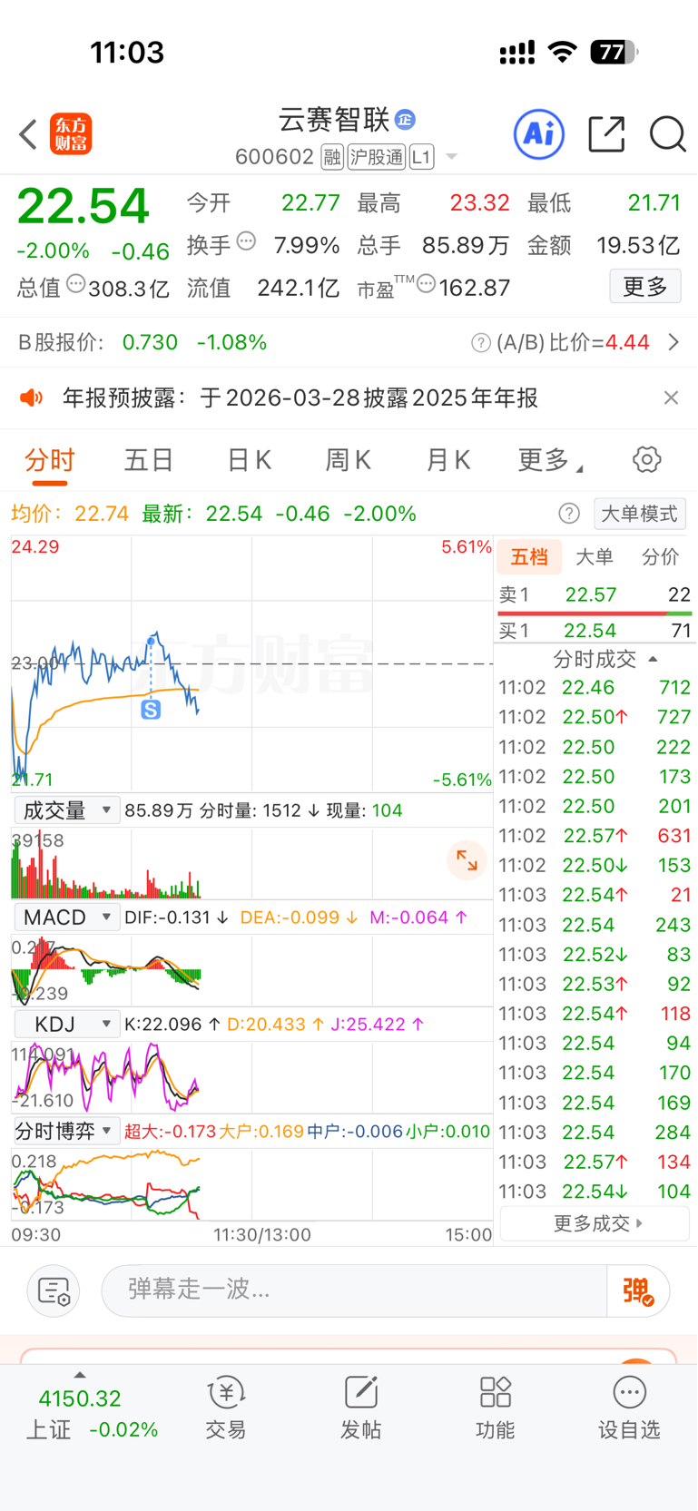 $云赛智联(SH600602)$ 我是被洗出去了吗