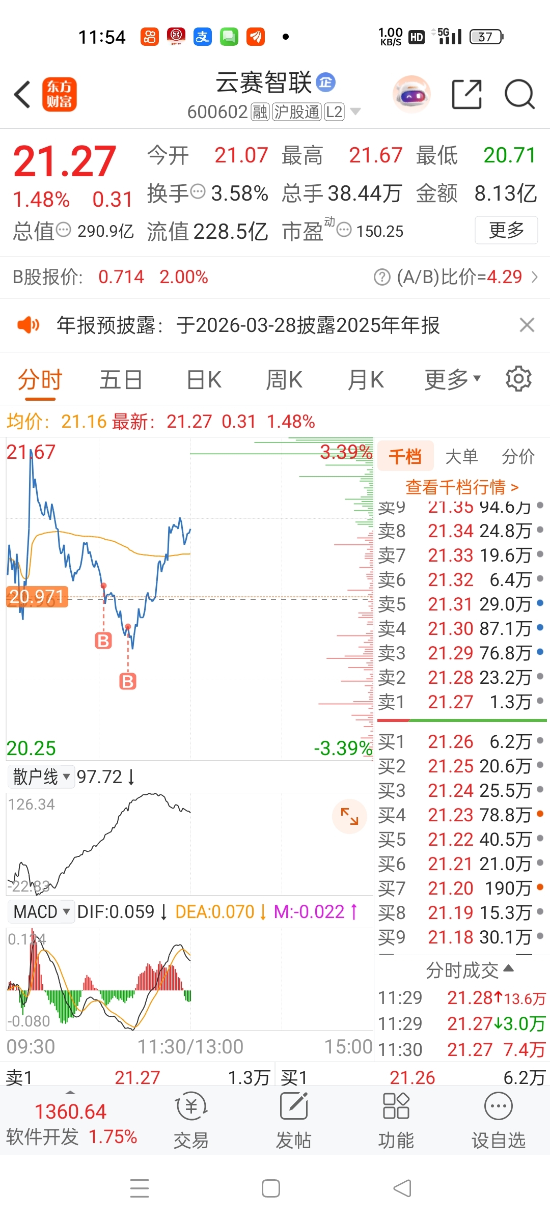 $云赛智联(SH600602)$ 今天绝对和昨天反向的。
