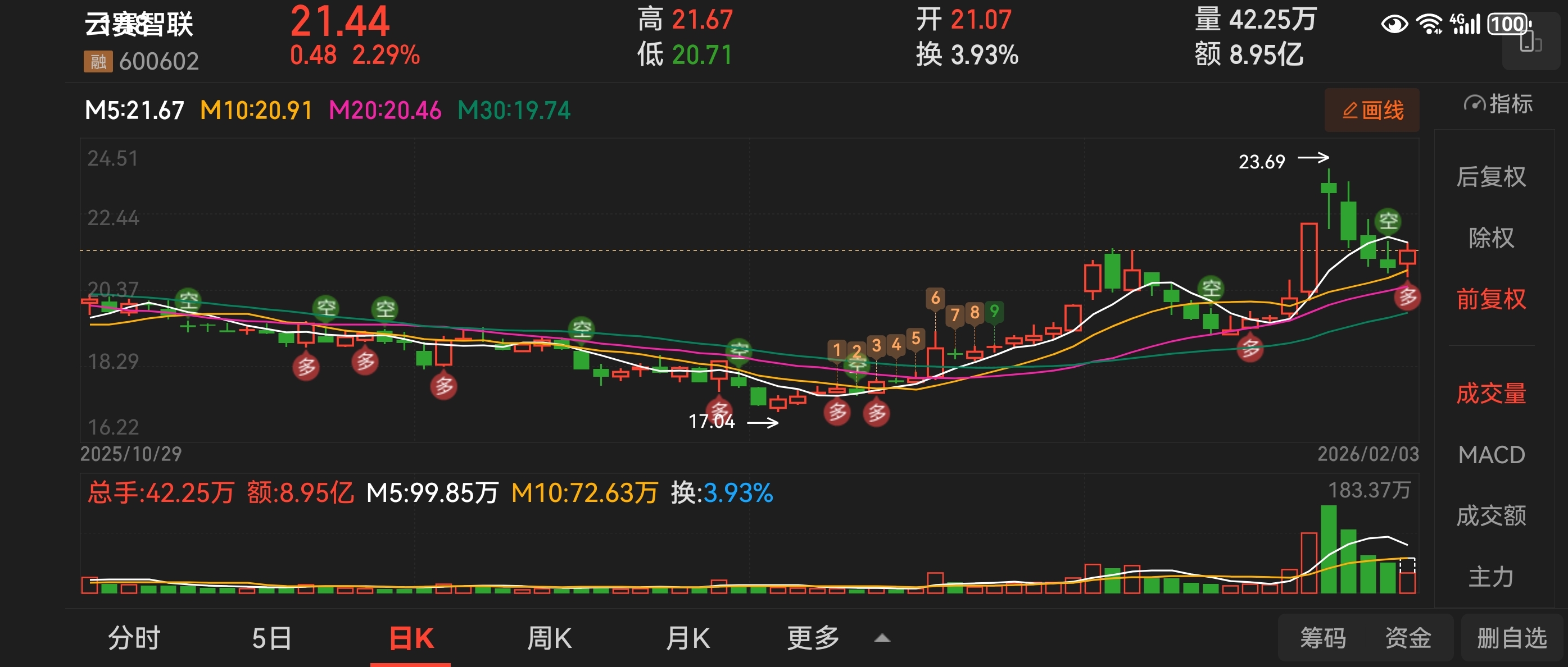 $云赛智联(SH600602)$ 下午盘关注