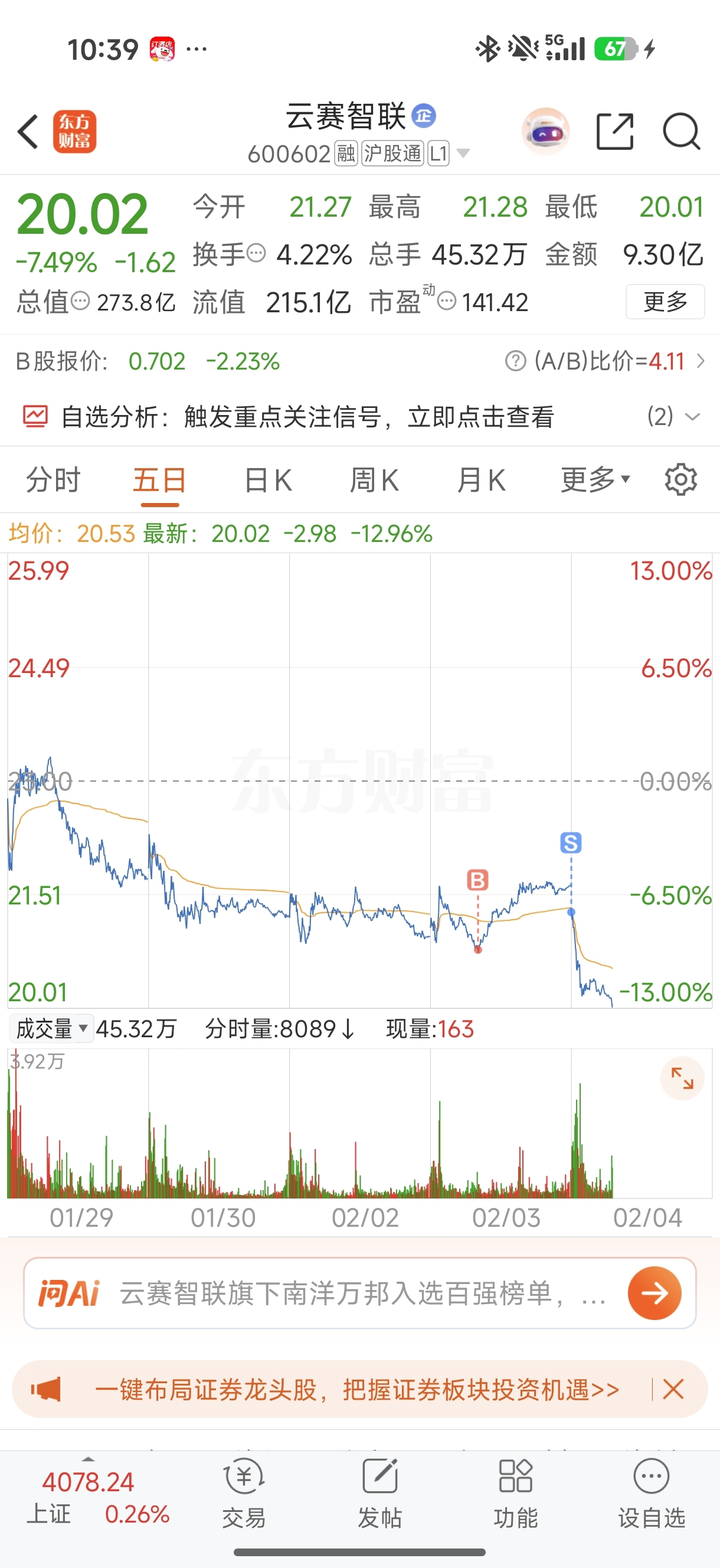 $云赛智联(SH600602)$ 就知道这不靠谱