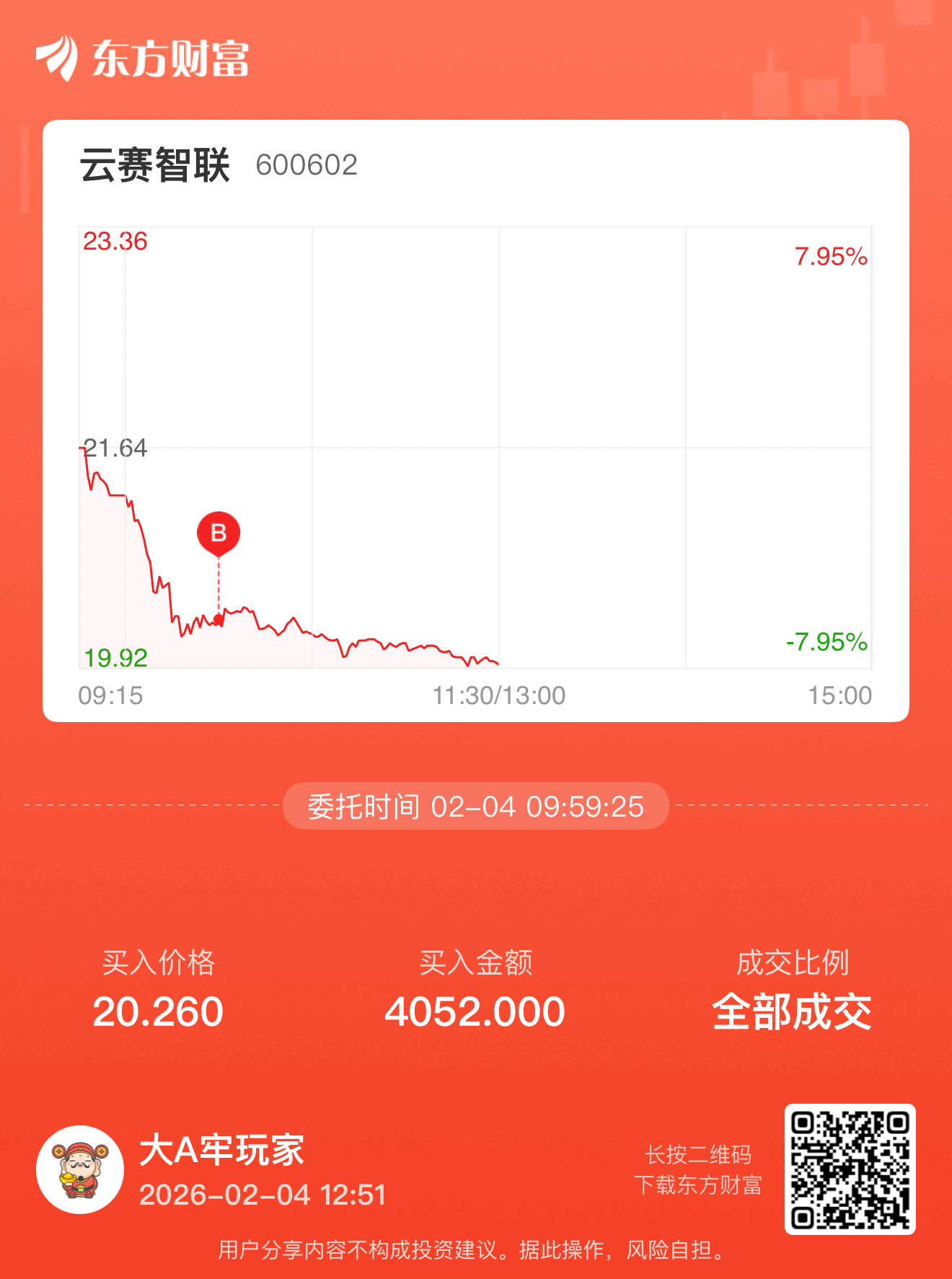 温馨提示: 1.根据《证券法》规定,禁止编造、传播虚假信息或者误导性信息,扰乱证券市场;2.用户在本社区发表的所有资料、言论等仅代表个人观点,与本网站立场无关,不对您构成任何投资建议。用户应基于自己的独立判断,自行决定证券投资并承担相应风险。《东方财富社区管理规定》