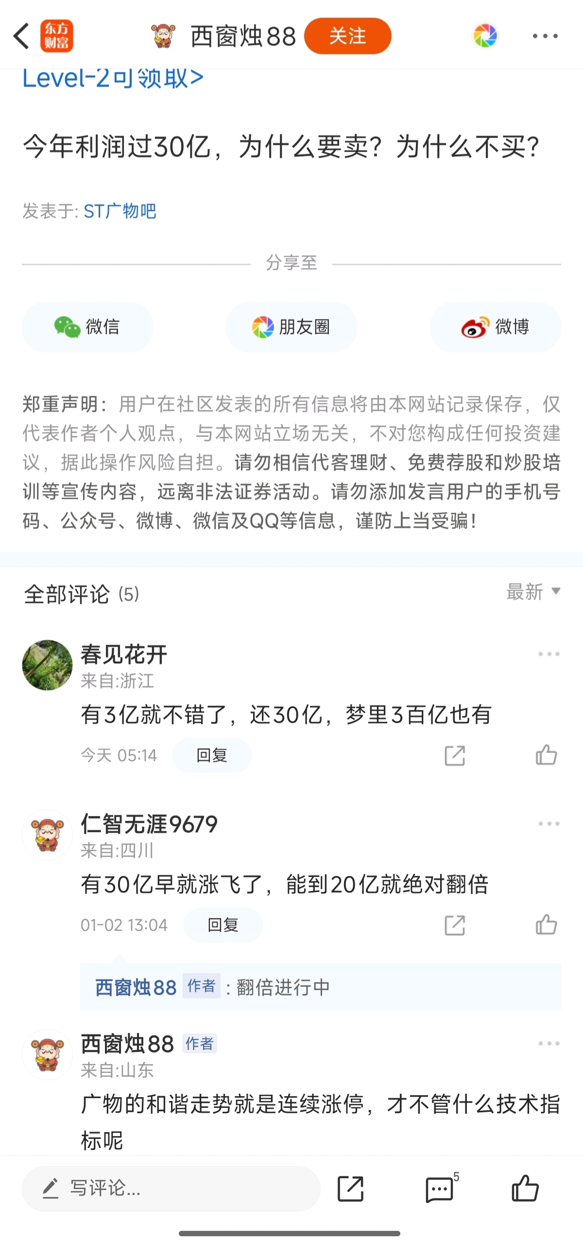 温馨提示: 1.根据《证券法》规定,禁止编造、传播虚假信息或者误导性信息,扰乱证券市场;2.用户在本社区发表的所有资料、言论等仅代表个人观点,与本网站立场无关,不对您构成任何投资建议。用户应基于自己的独立判断,自行决定证券投资并承担相应风险。《东方财富社区管理规定》