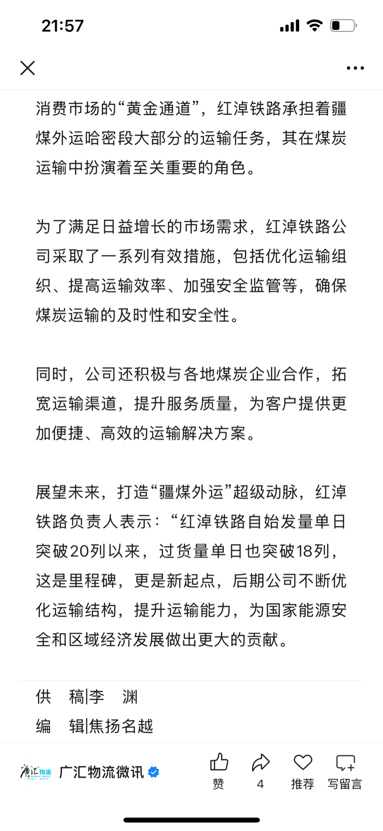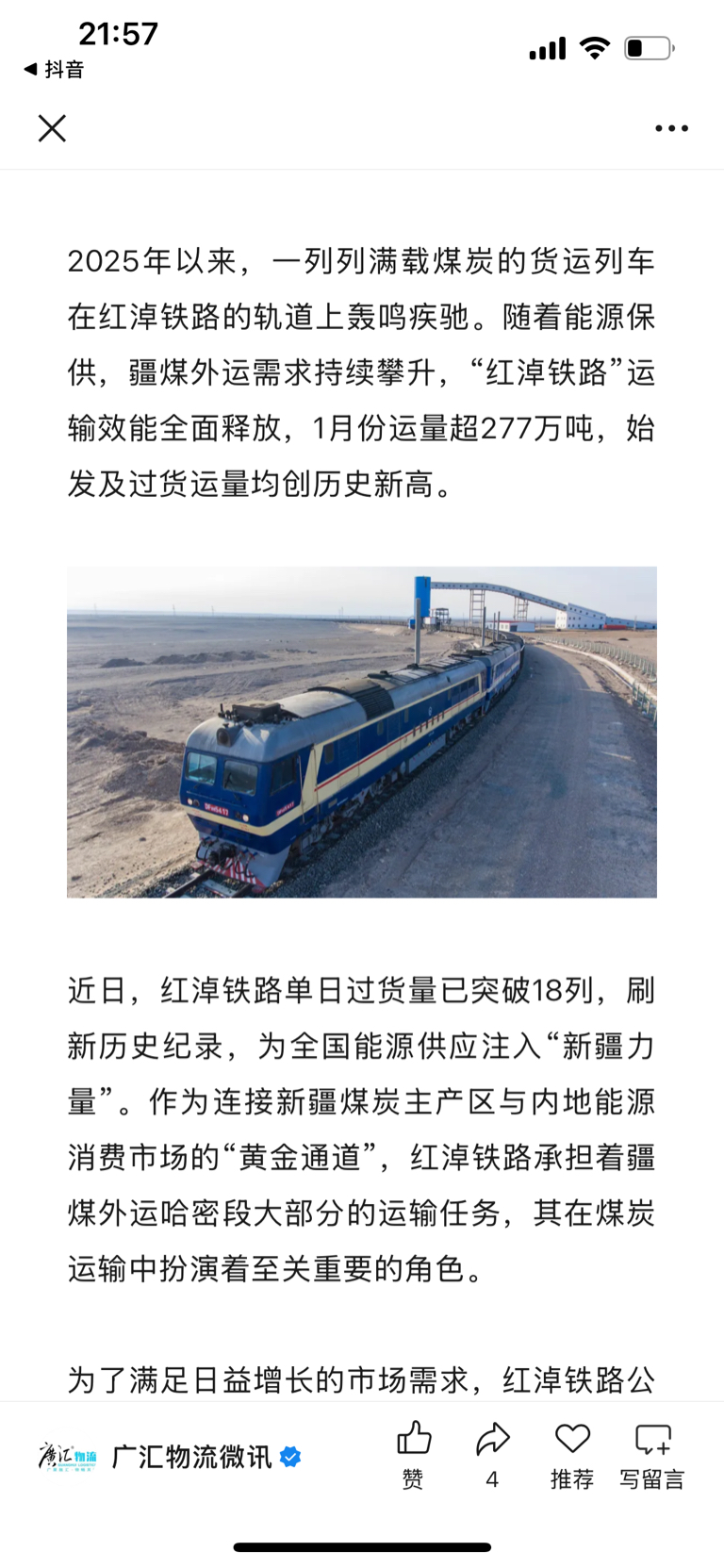 我只能用炸裂来形容,1月份运量277万吨。这还是没有走临哈线得结果,临哈线连接线