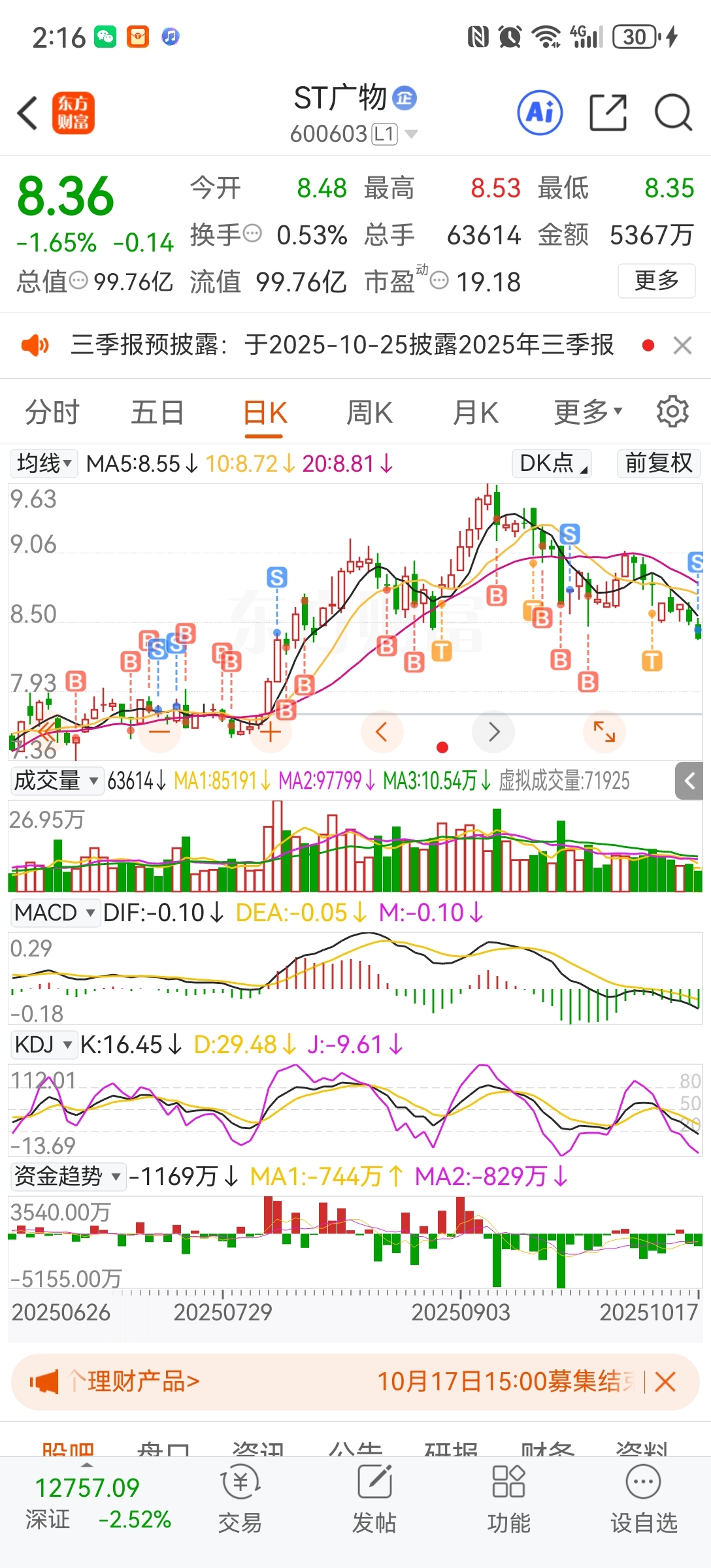 $ST广物(SH600603)$ 赚2万多没有,今天亏钱走了,再不走怕亏的更多,主力太恶心
