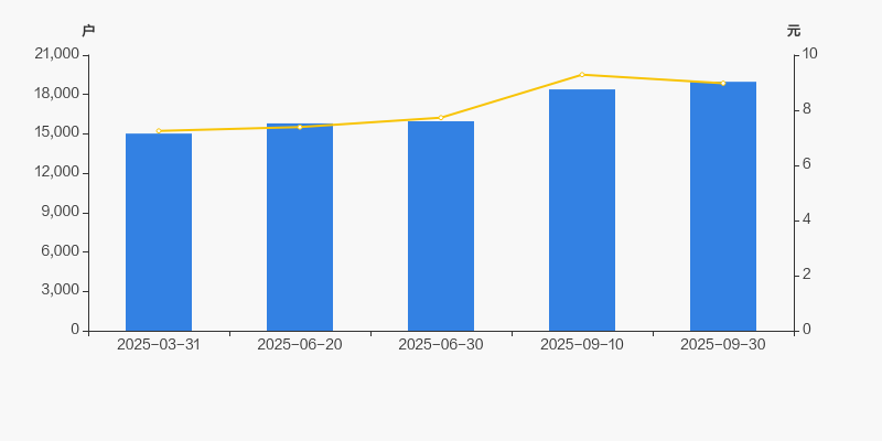 自2025年3月31日以来,公司股东户数连续4期上涨,截至目前增幅为26.27%。2025年3月31日至2025年9月30日区间股价上涨23.86%。