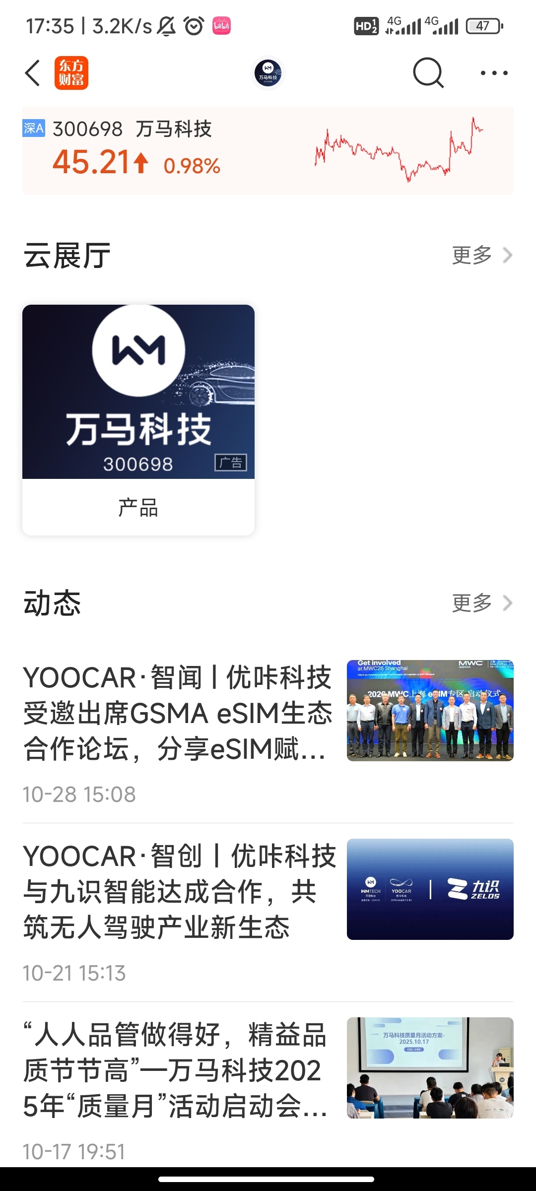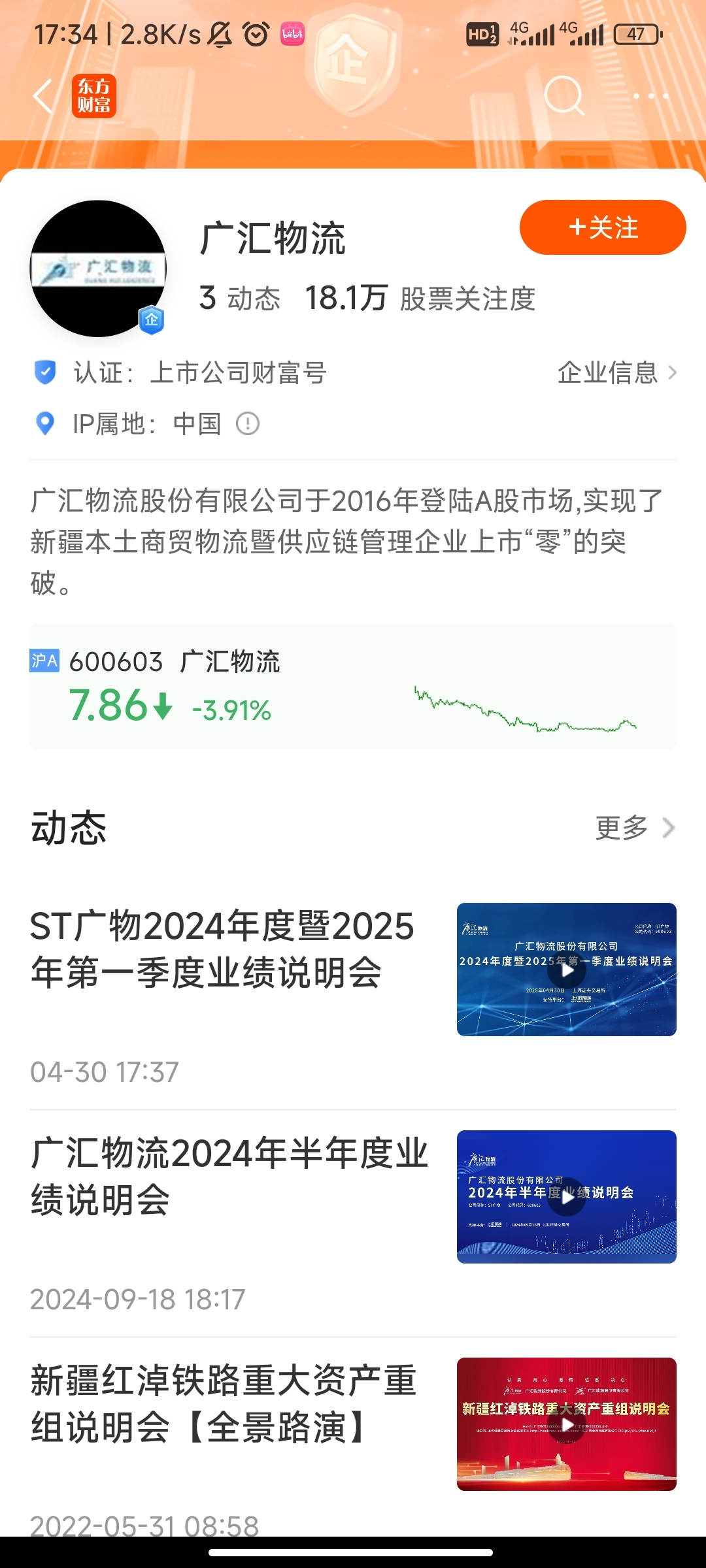 $广汇物流(SH600603)$ $万马科技(SZ300698)$ 所谓企业号几年就发了三个公告,我现在买的这只,一周都要发1-2个最新资讯,每周董秘回复好几条投资者问答,说真的哪怕是技术不顶尖,人家起码愿意哄着,广物压根不理会投资者。