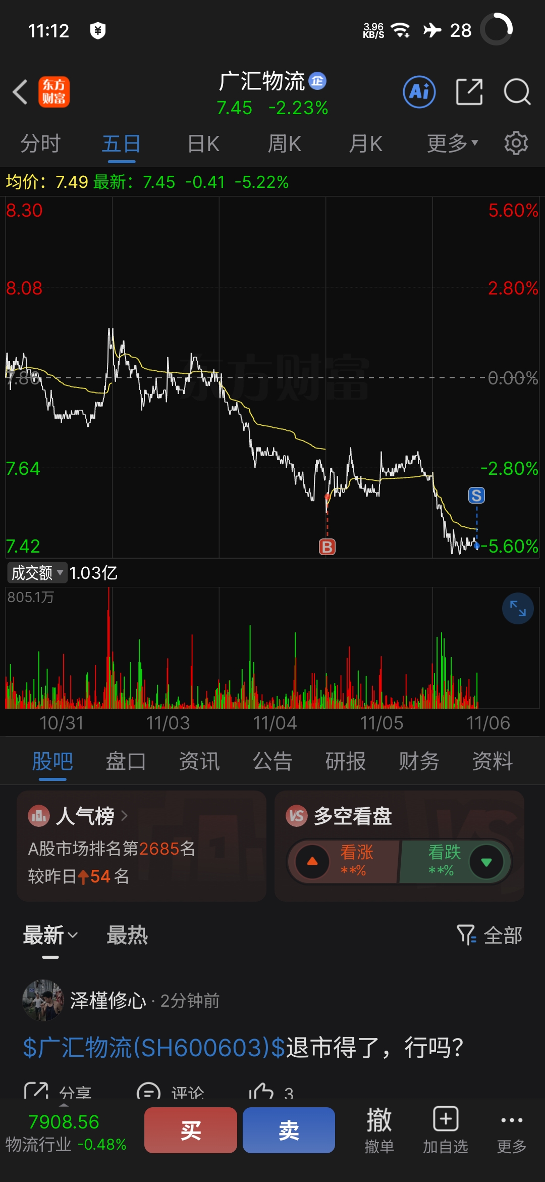 $广汇物流(SH600603)$ 一点反弹都不给幸好轻仓。真的过分 不过摘帽股大部分都这德行!