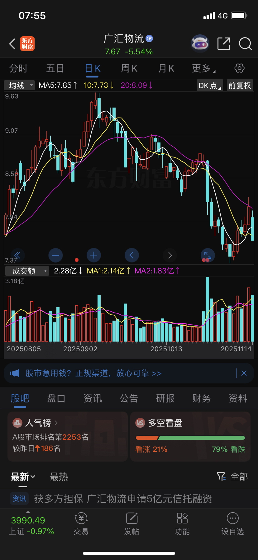 $广汇物流(SH600603)$ 很好!这么多人看空!今天我看涨!