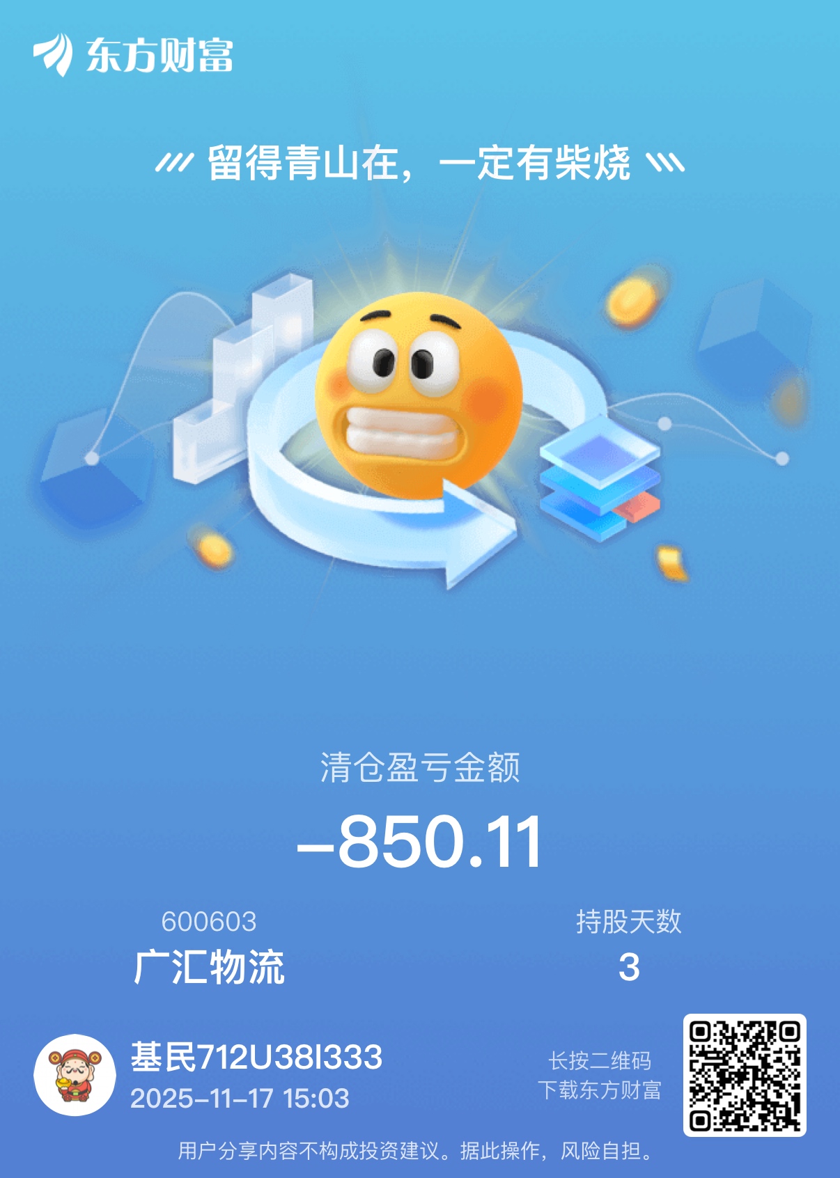 $广汇物流(SH600603)$ 我割肉了,吗的,服了,一开盘割的话什么事都没。心好累,