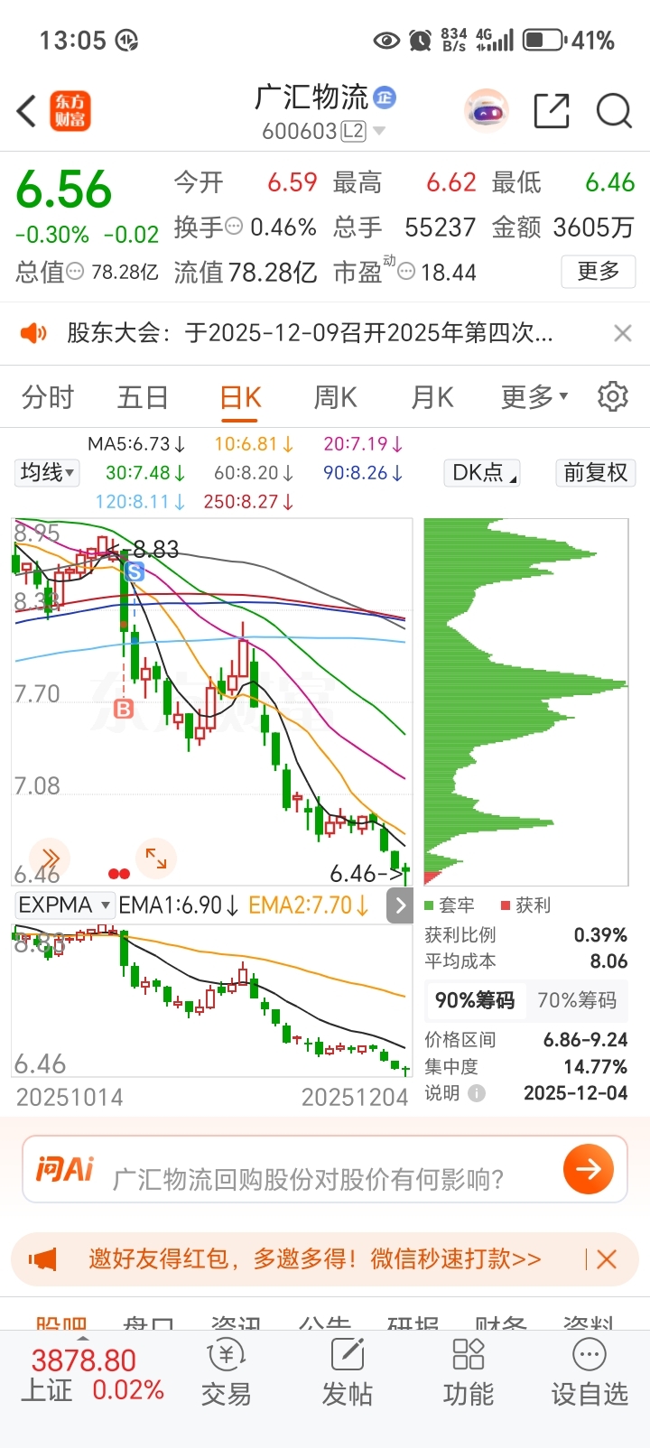$广汇物流(SH600603)$ 这个广汇物流是没有底了吗?