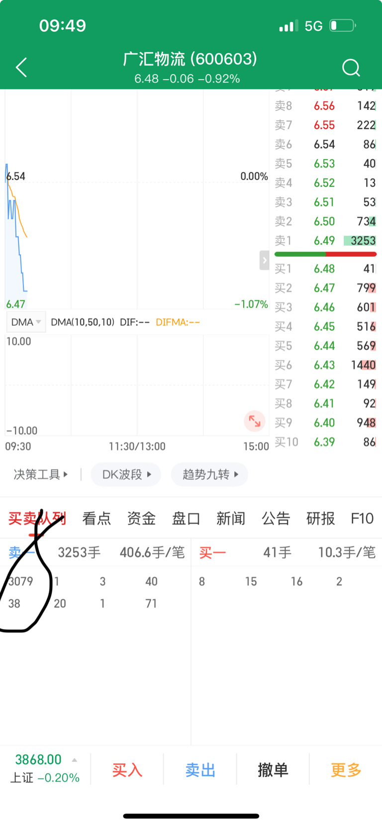 $广汇物流(SH600603)$ 压的历害,都是第一顺位