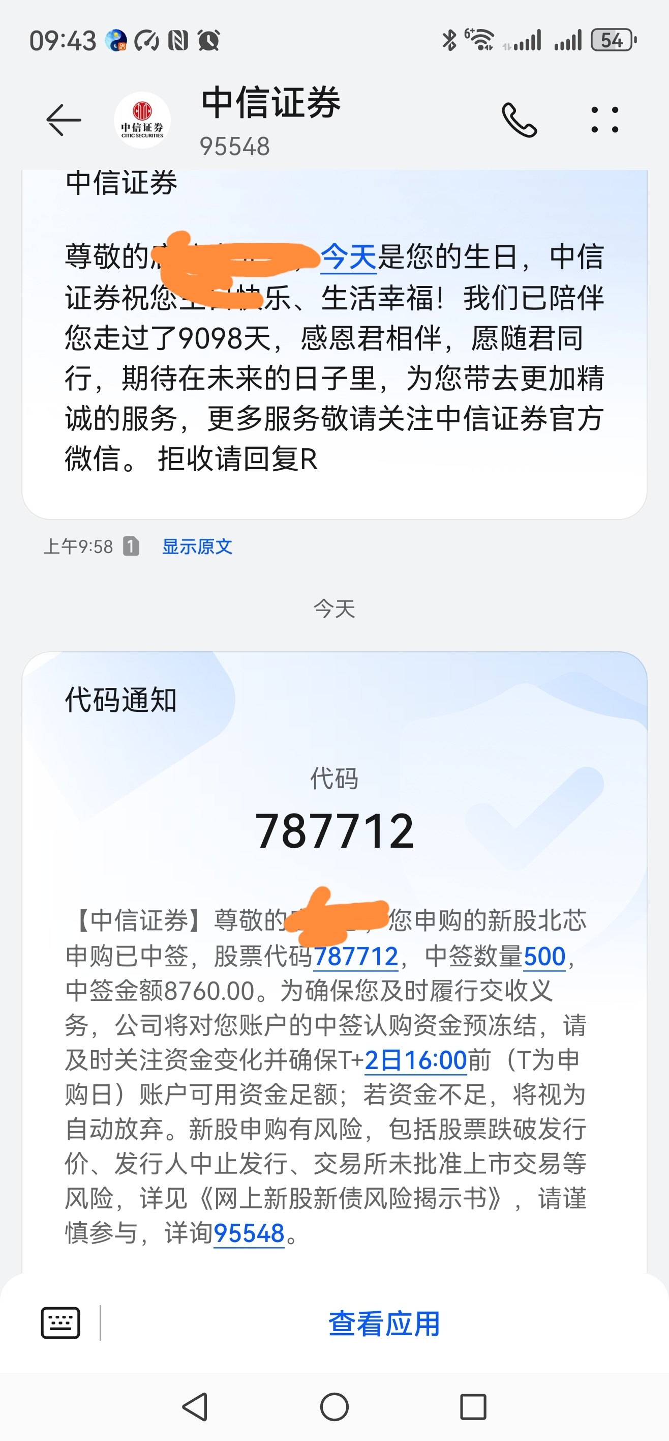 今天又中新股了,是生日礼物吧,去年12月刚中一个,现在又中一签,运气来了。