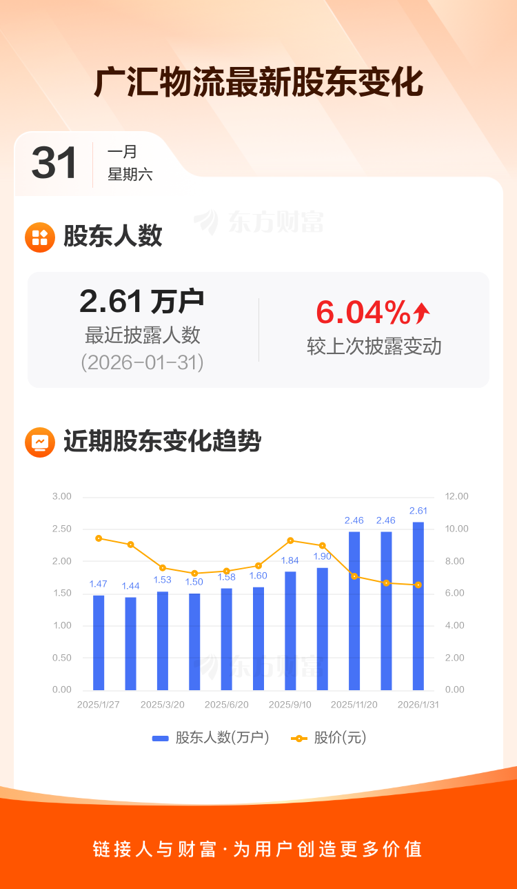广汇物流:截至1月31日最新股东户数2.61万户,较上期增加6.04%