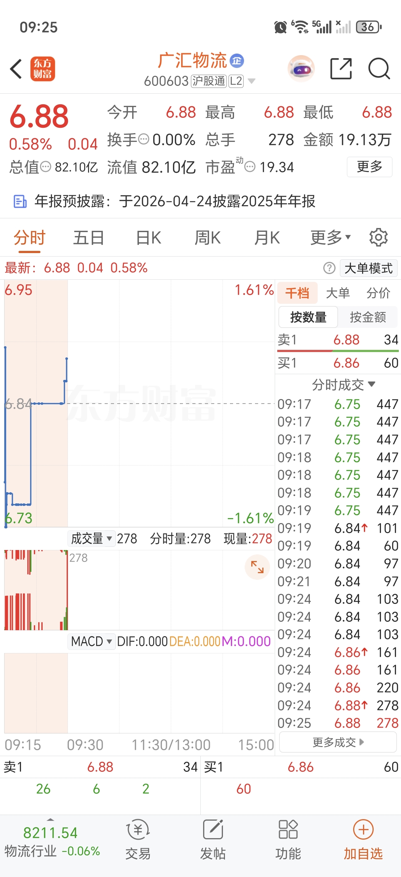 $广汇物流(SH600603)$ 真吉利,大家发财