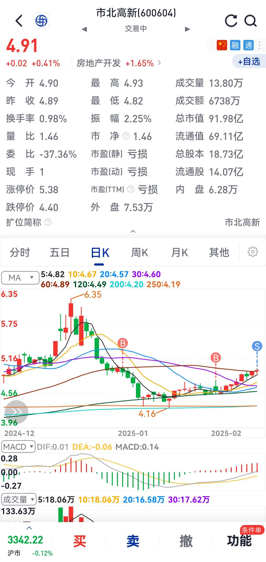 $市北高新(SH600604)$ 不亏钱,撤!还剩34只。