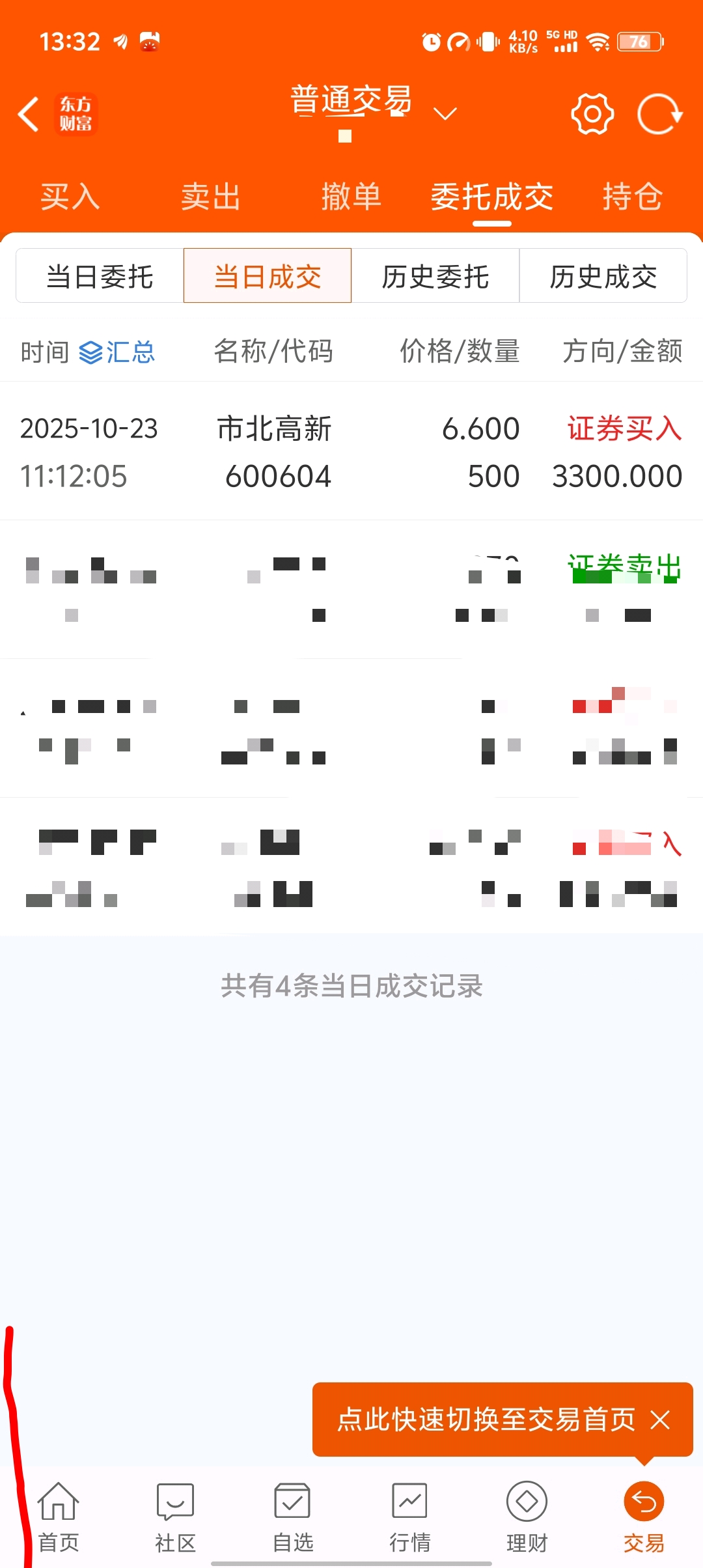 今日成交股票:操作原因:补仓6.60