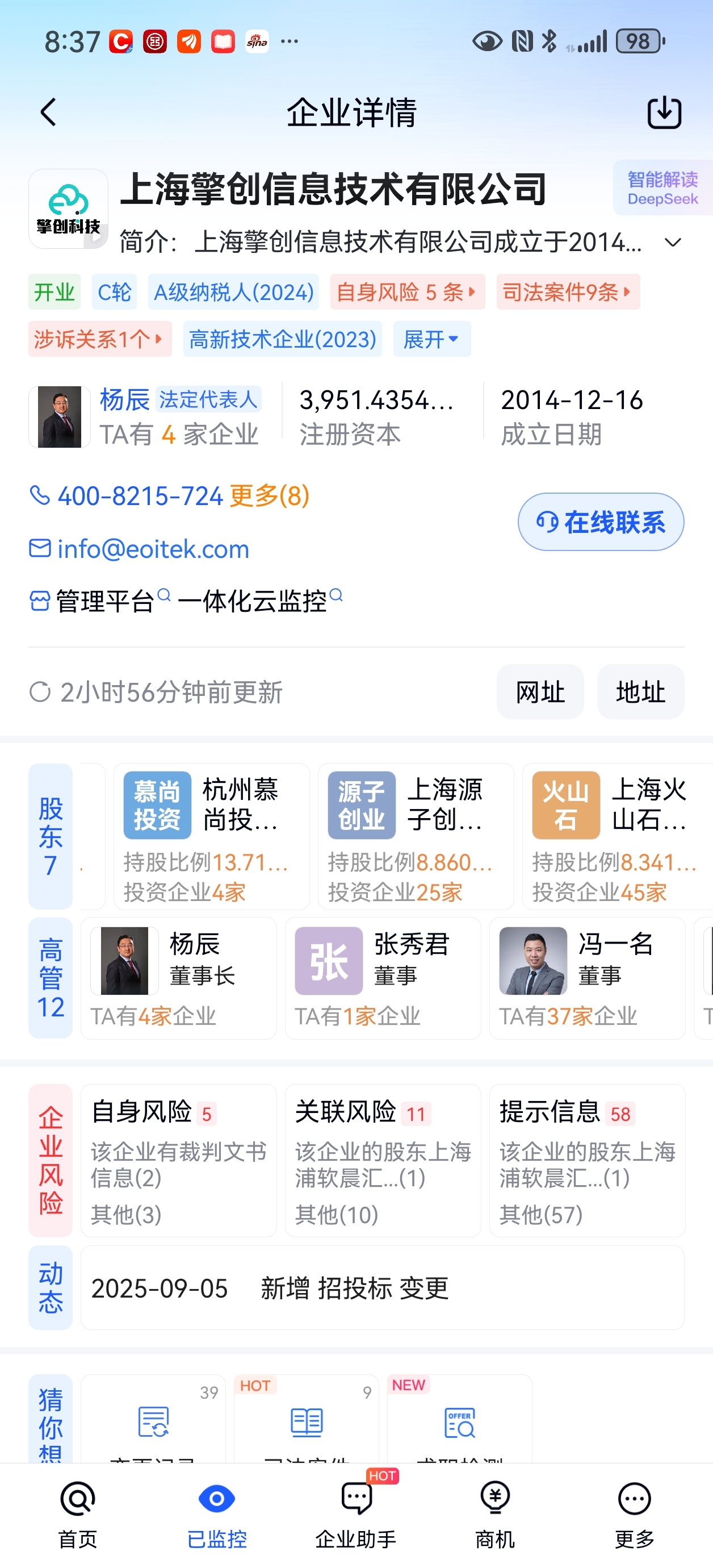 今天聊一聊擎创科技,目前C轮融资,火山石一期第四大股东,拿去不谢