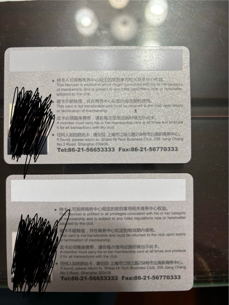 两张贵公司商务中心的会员卡,2018年上半年办的,和我儿子一人一张,1.5w一年