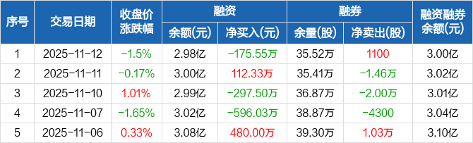 市北高新:融资净偿还175.55万元,融资余额2.98亿元(11-12)
