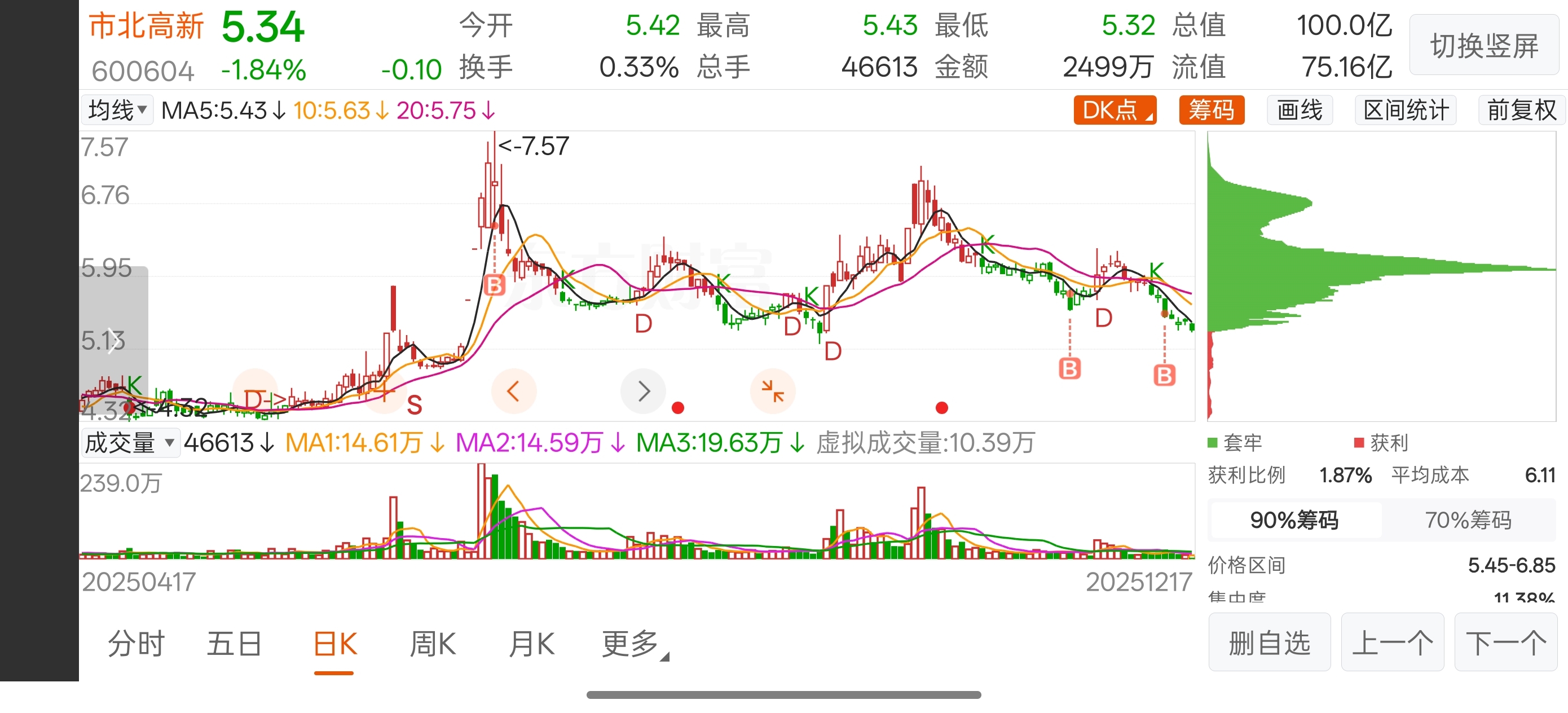 $市北高新(SH600604)$ 这股主力也亏钱吧