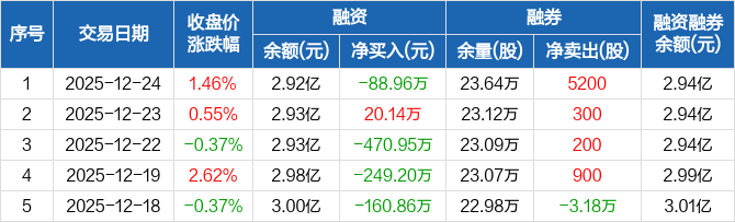 市北高新:融资净偿还88.96万元,融资余额2.92亿元(12-24)