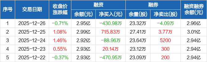 市北高新:融资净偿还430.98万元,融资余额2.95亿元(12-26)