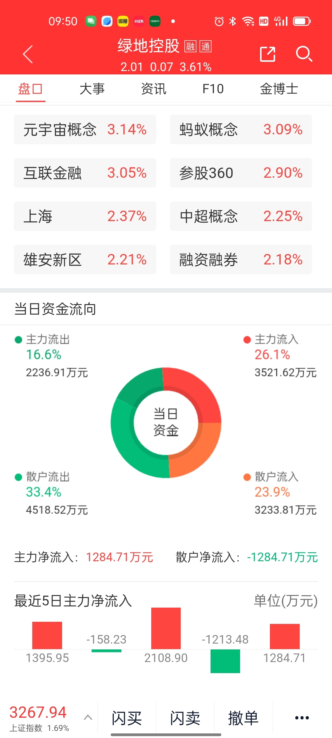 $绿地控股(SH600606)$ 主力狂进中