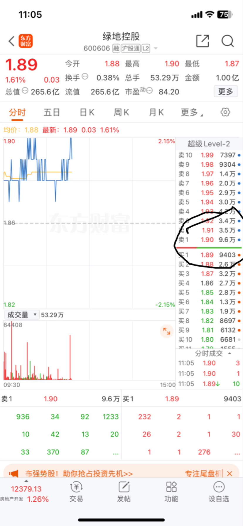 $绿地控股(SH600606)$ 想涨,没门,10万手压单,来吃我呀,哈哈哈 ''