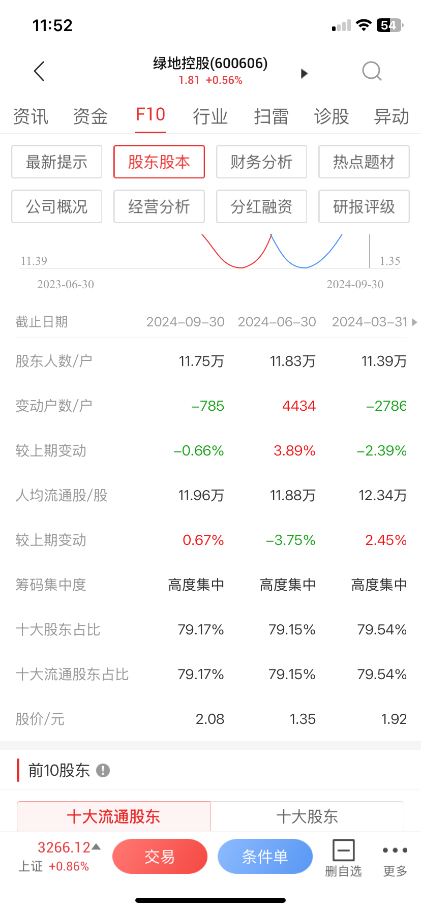 $绿地控股(SH600606)$ 满仓绿地跌了就买,筹码高度集中