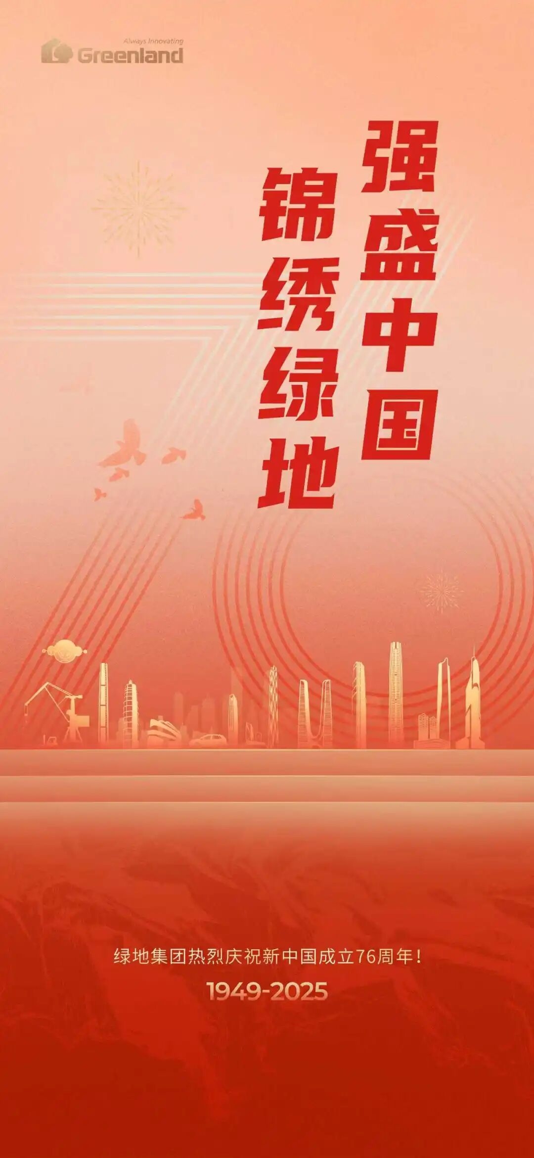 文案不错下面一排都是绿地在各地的地标建筑,锦绣代表五颜六色,红的肯定有。