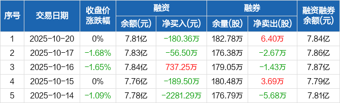绿地控股:融资净偿还180.36万元,融资余额7.81亿元(10-20)