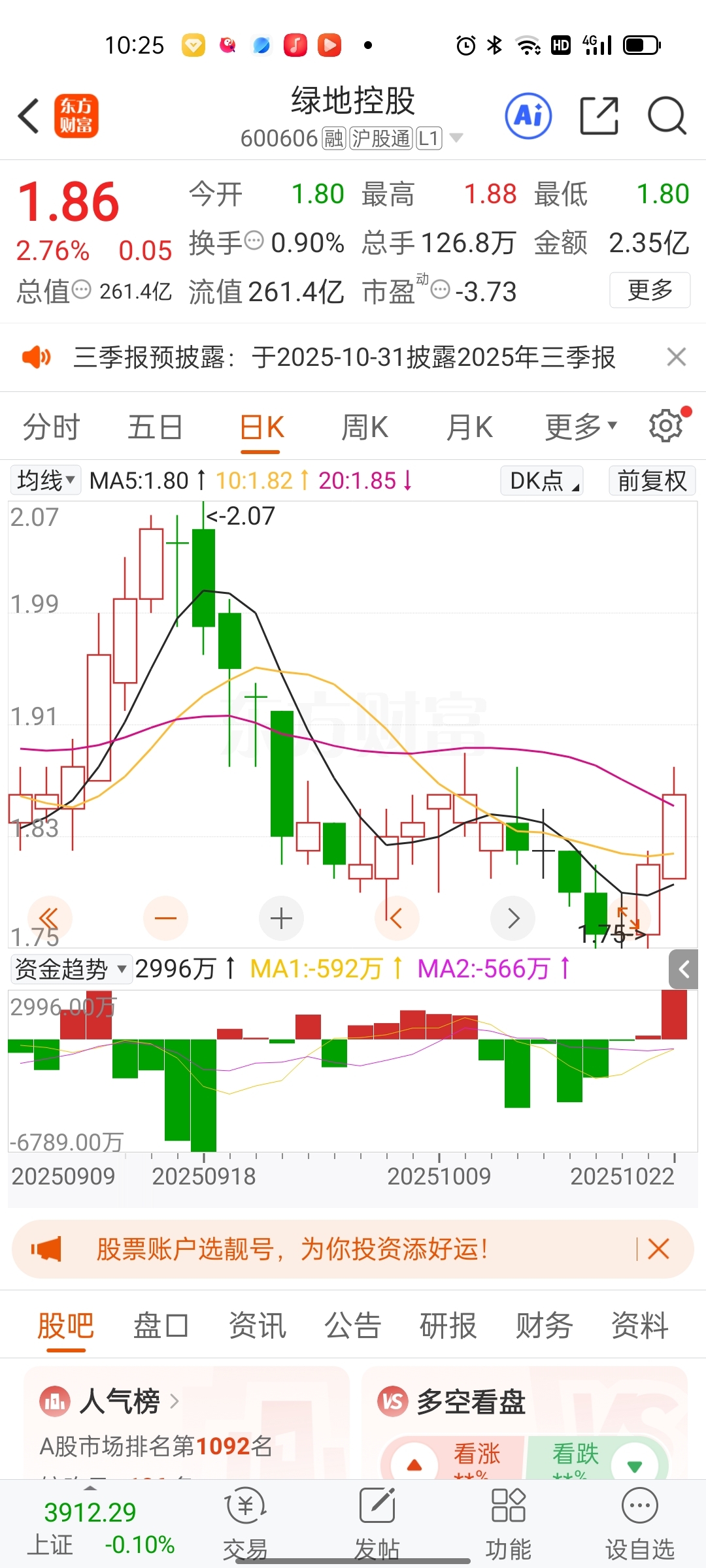 $绿地控股(SH600606)$ 主力二次进场,千万拿稳
