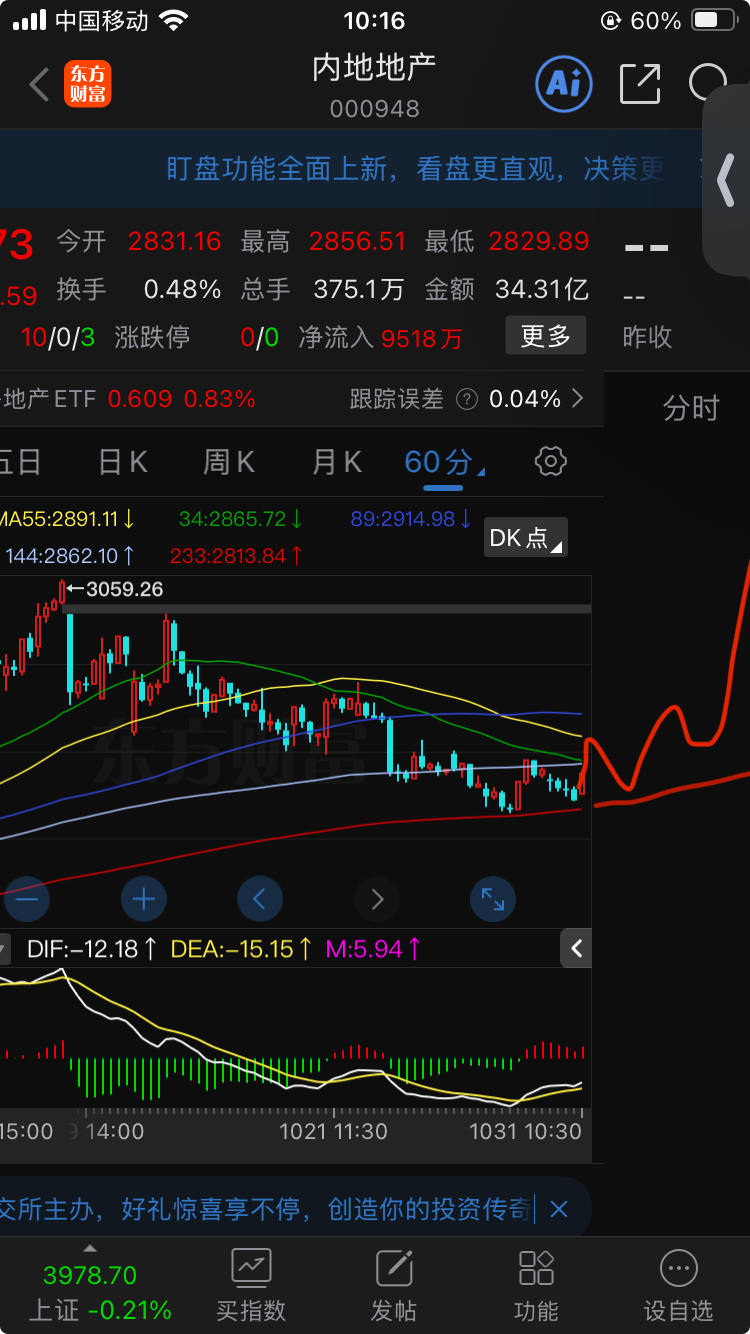 房地产板块60分钟级别已经过底——后续斜坡锯齿向上(按较慢的节奏预估)