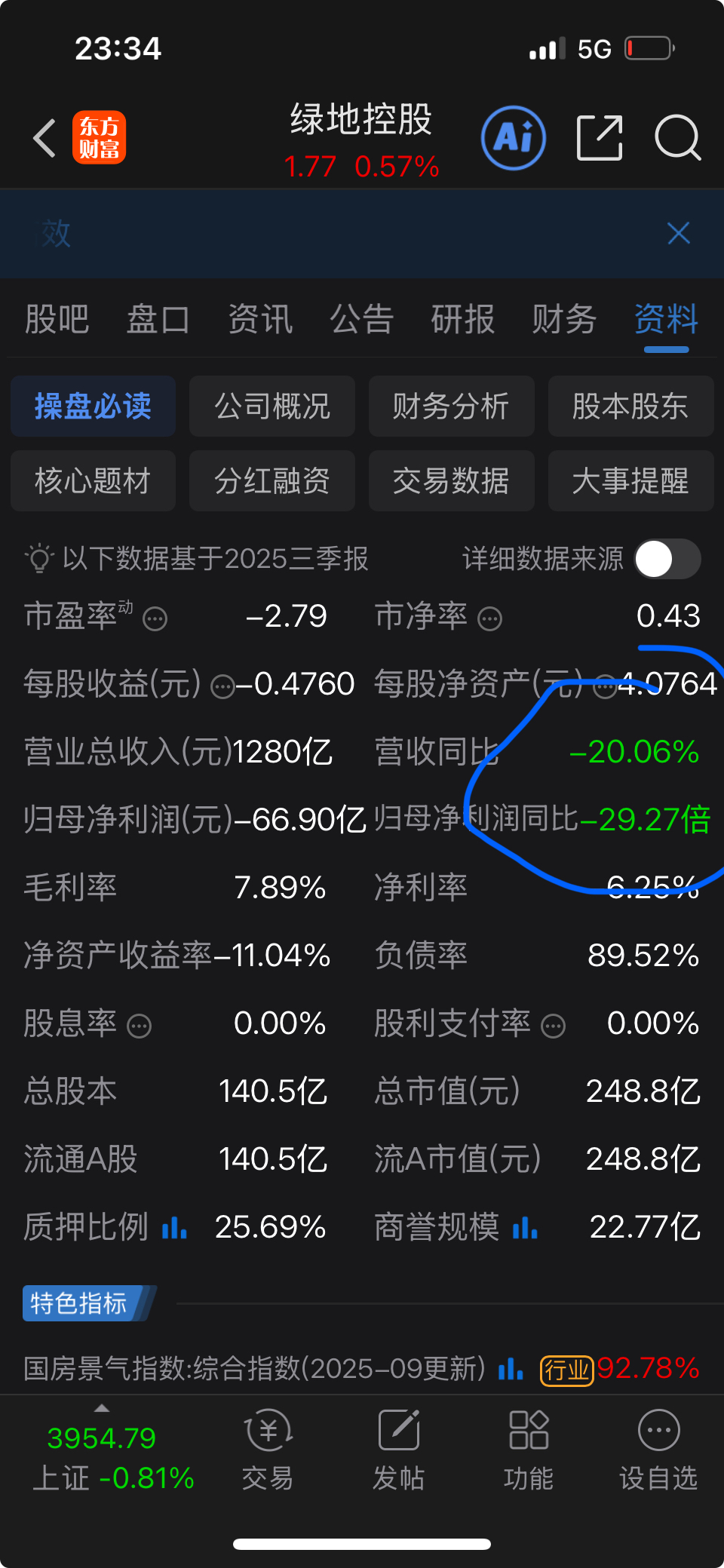 $绿地控股(SH600606)$ 净利润同比扩大亏损2900%,你们说这个能好么