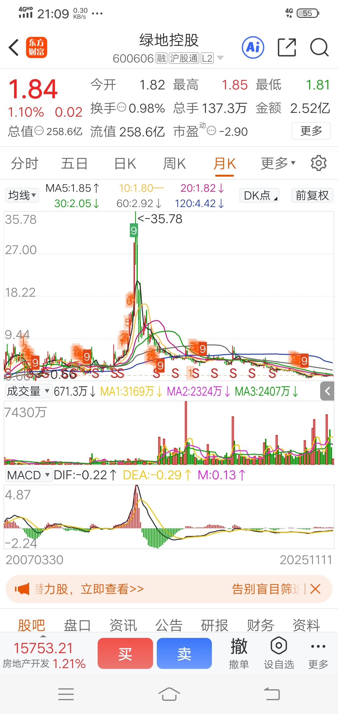 庄家大哥学习学习:同样是房地产板块的,绿地控股现在已经转型成功,别人是越亏的大股