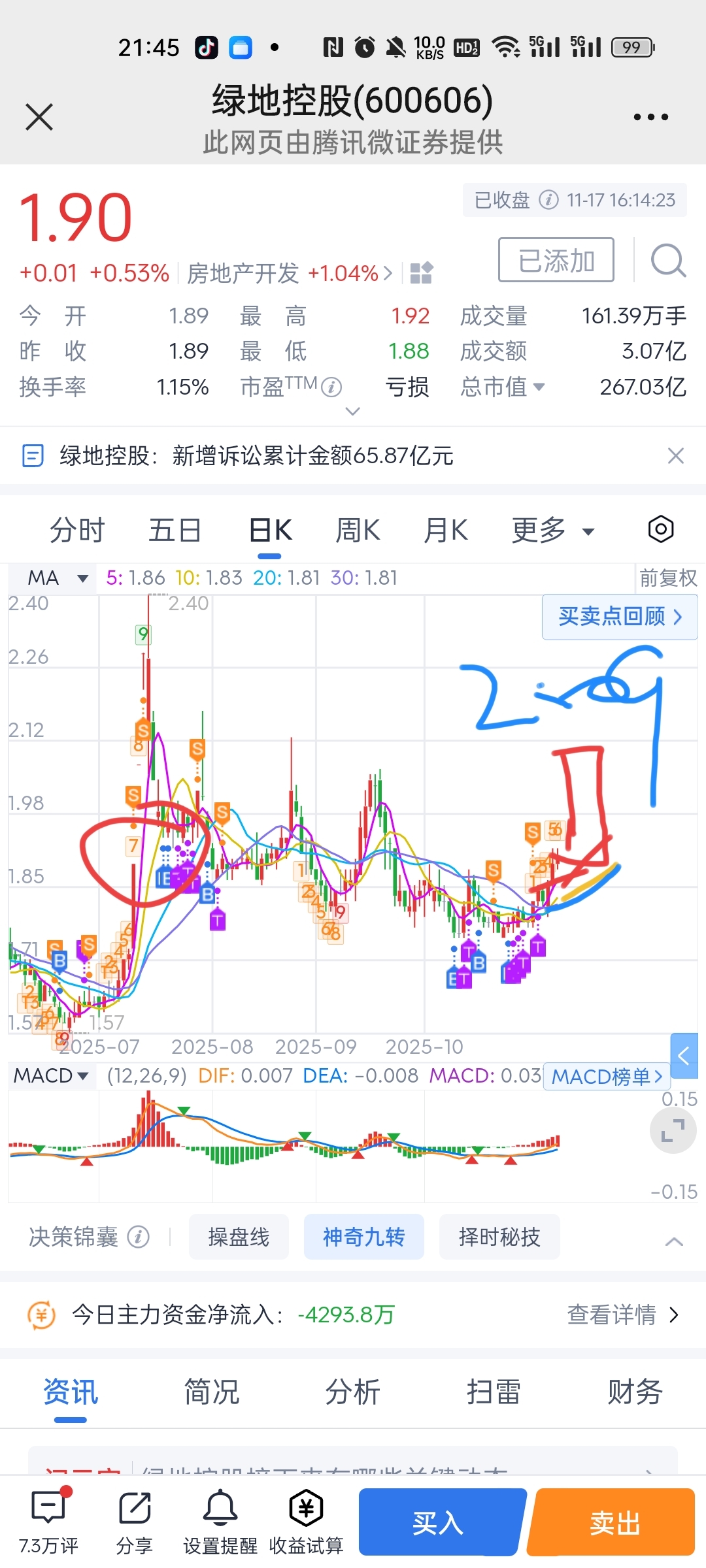 $绿地控股(SH600606)$ 大家看一下这走势对不对呀