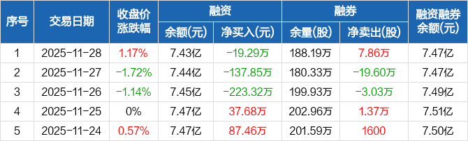 绿地控股:融资余额7.43亿元,创近一年新低(11-28)