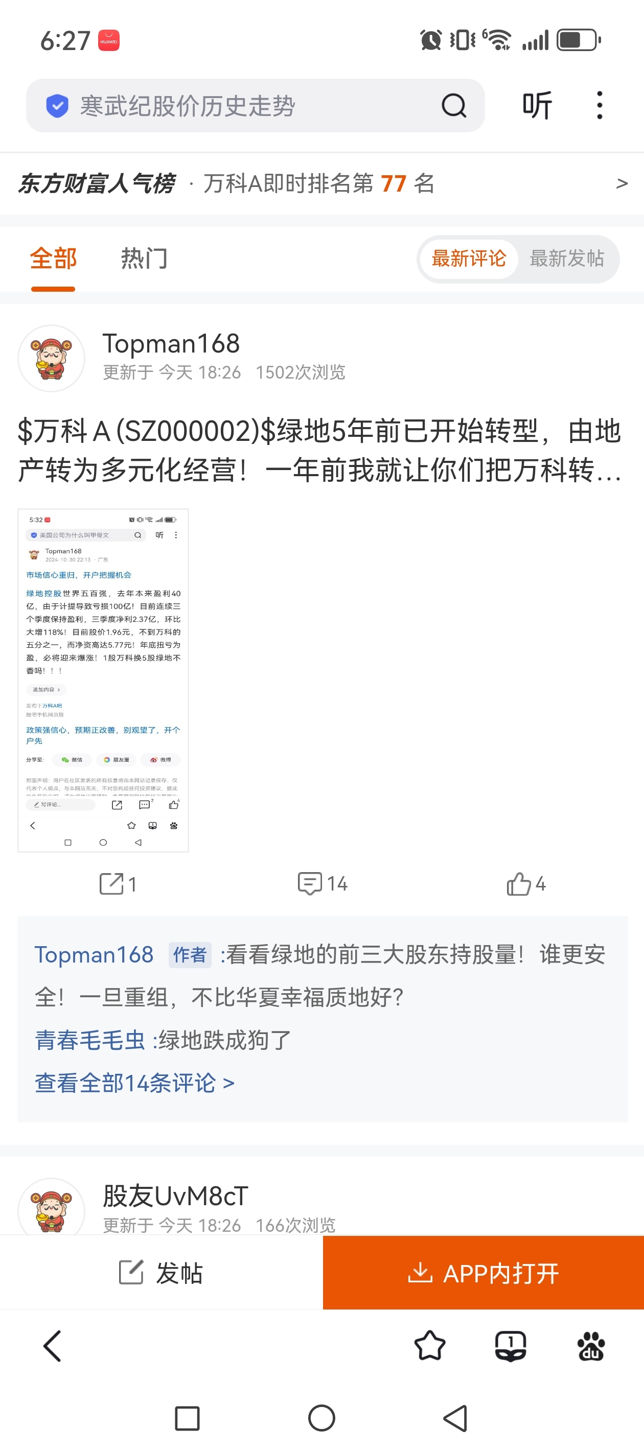 $绿地控股(SH600606)$ 万科股吧真活跃,不到20分钟,1500多人浏览!