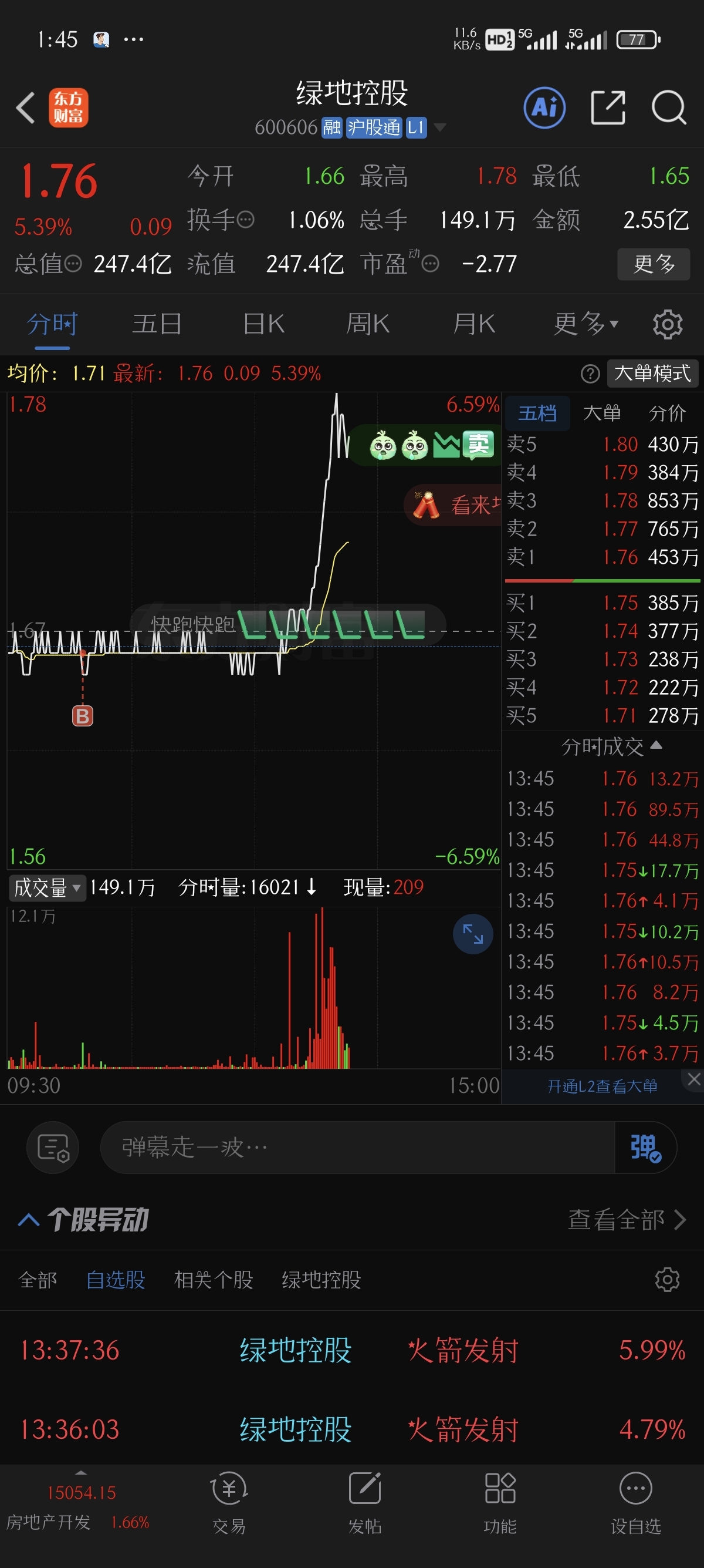 $绿地控股(SH600606)$ 说了叫你们不要怕,我来陪你们咯,