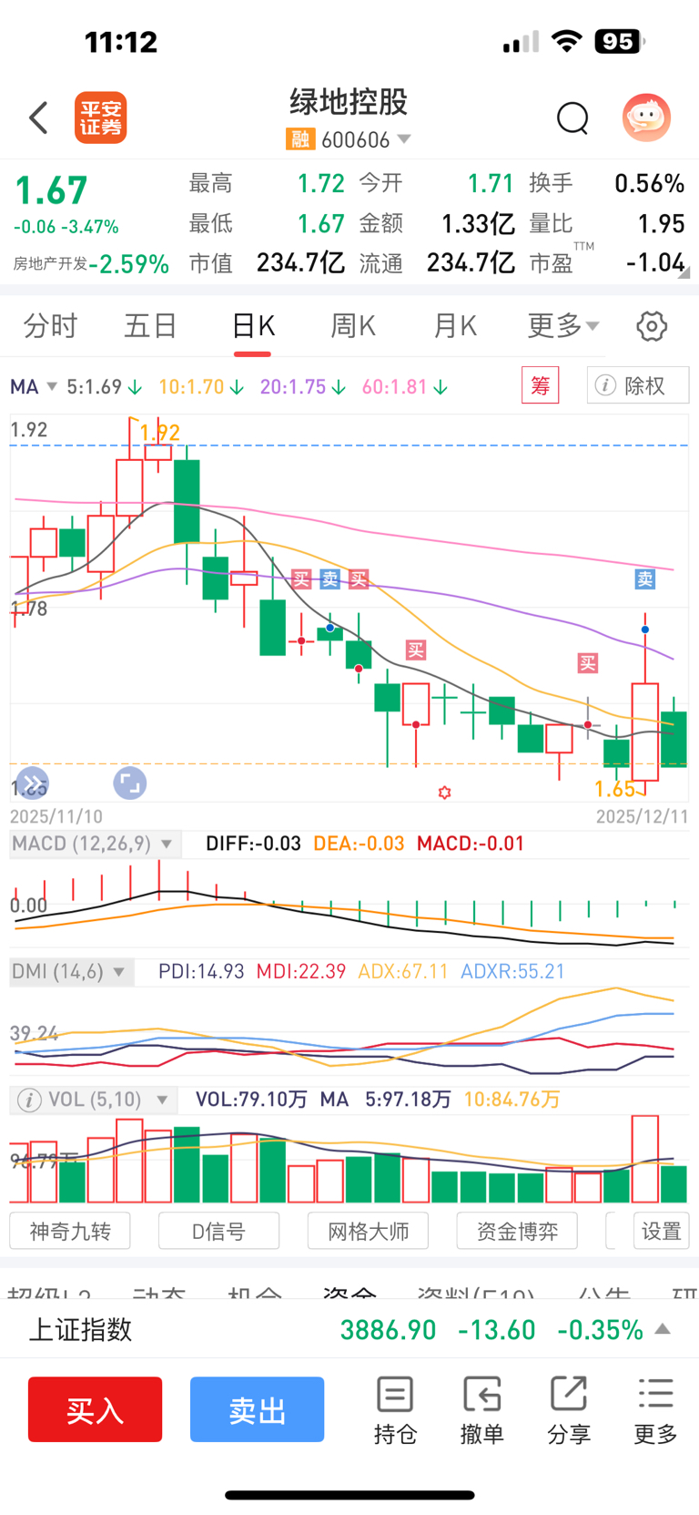 $绿地控股(SH600606)$ 1.78有阻力,清仓!等股价1.59再进!