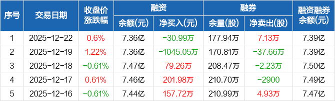 绿地控股:融资余额7.36亿元,创近一年新低(12-22)