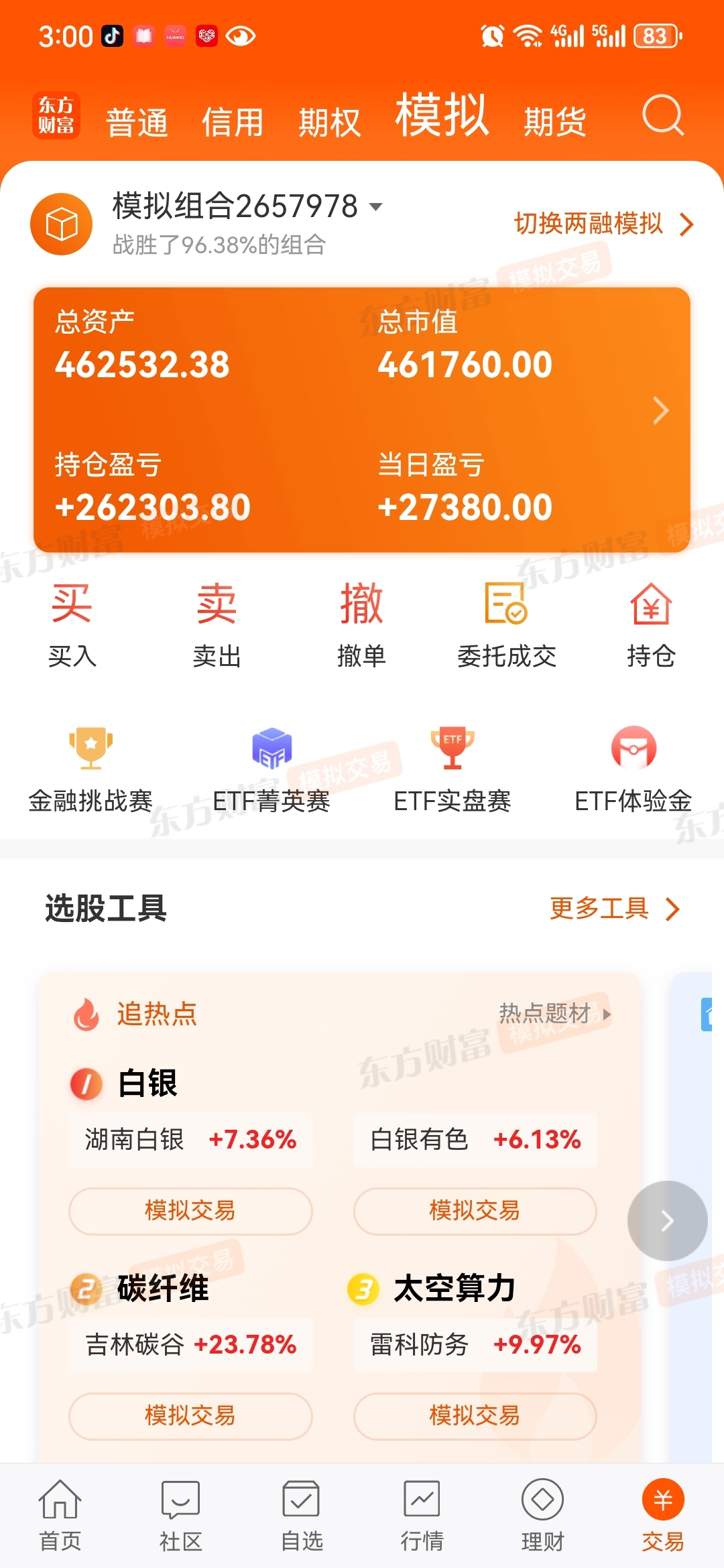 $*ST万方(SZ000638)$ $*ST东易(SZ002713)$ $广道退(SZ920680)$ 亏嘛了,今天就发个模拟盘吧,拿着不动都翻倍了