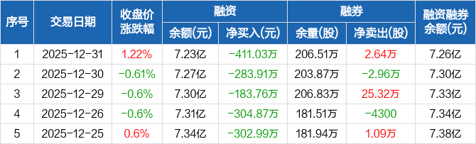 绿地控股:融资余额7.23亿元,创近一年新低(12-31)