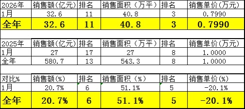 绿地控股1月份权益销售32.6亿元,同比上升20.7%,销售面积40.8%,同比