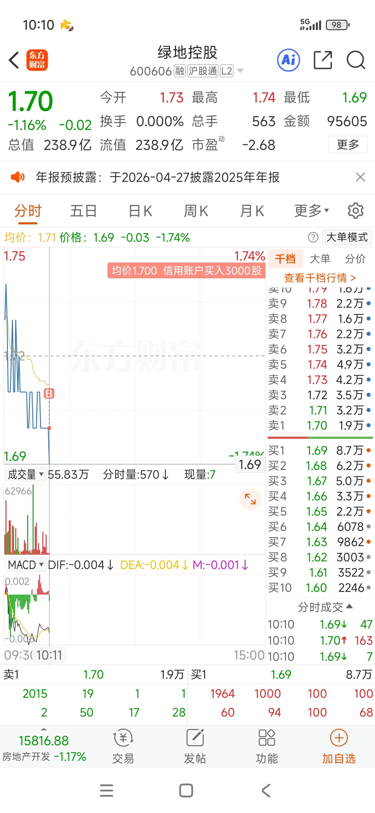 $绿地控股(SH600606)$ 上海地产,意思下