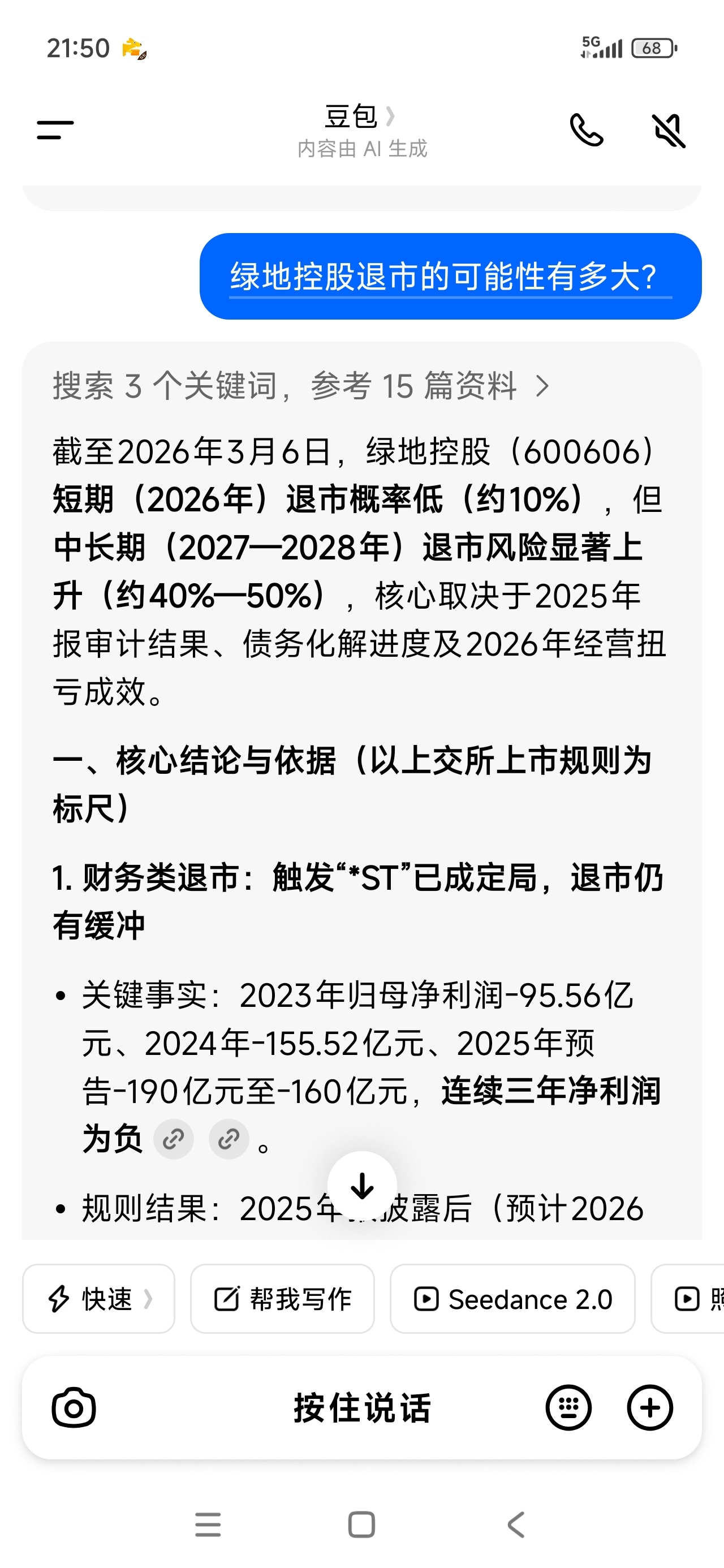 $绿地控股(SH600606)$ - 结论:2026年退市概率低,但*ST已成定局