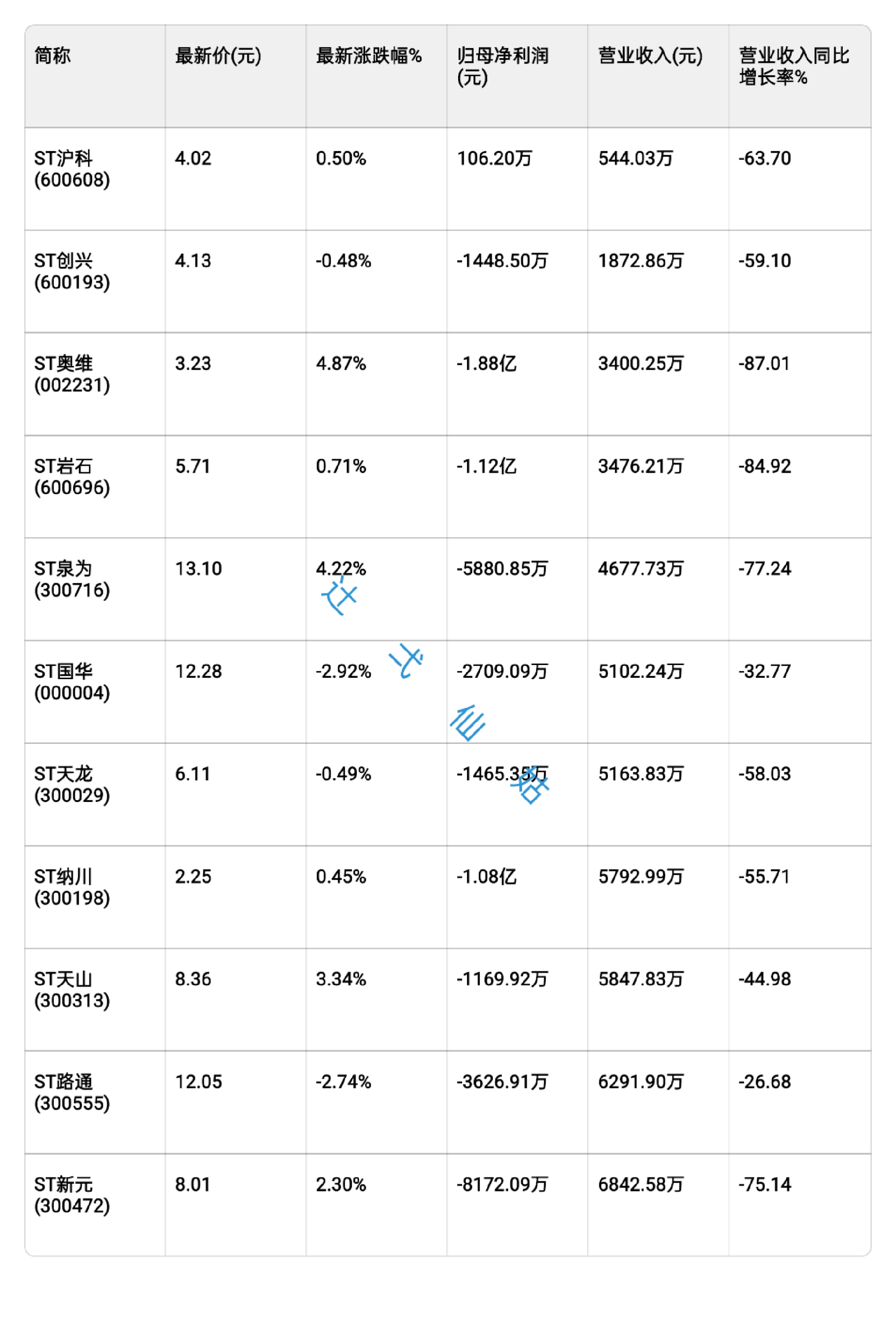 $*ST沪科(SH600608)$ $*ST创兴(SH600193)$ $*ST奥维(SZ002231)$ 数据收集于同花顺,仅供参考!