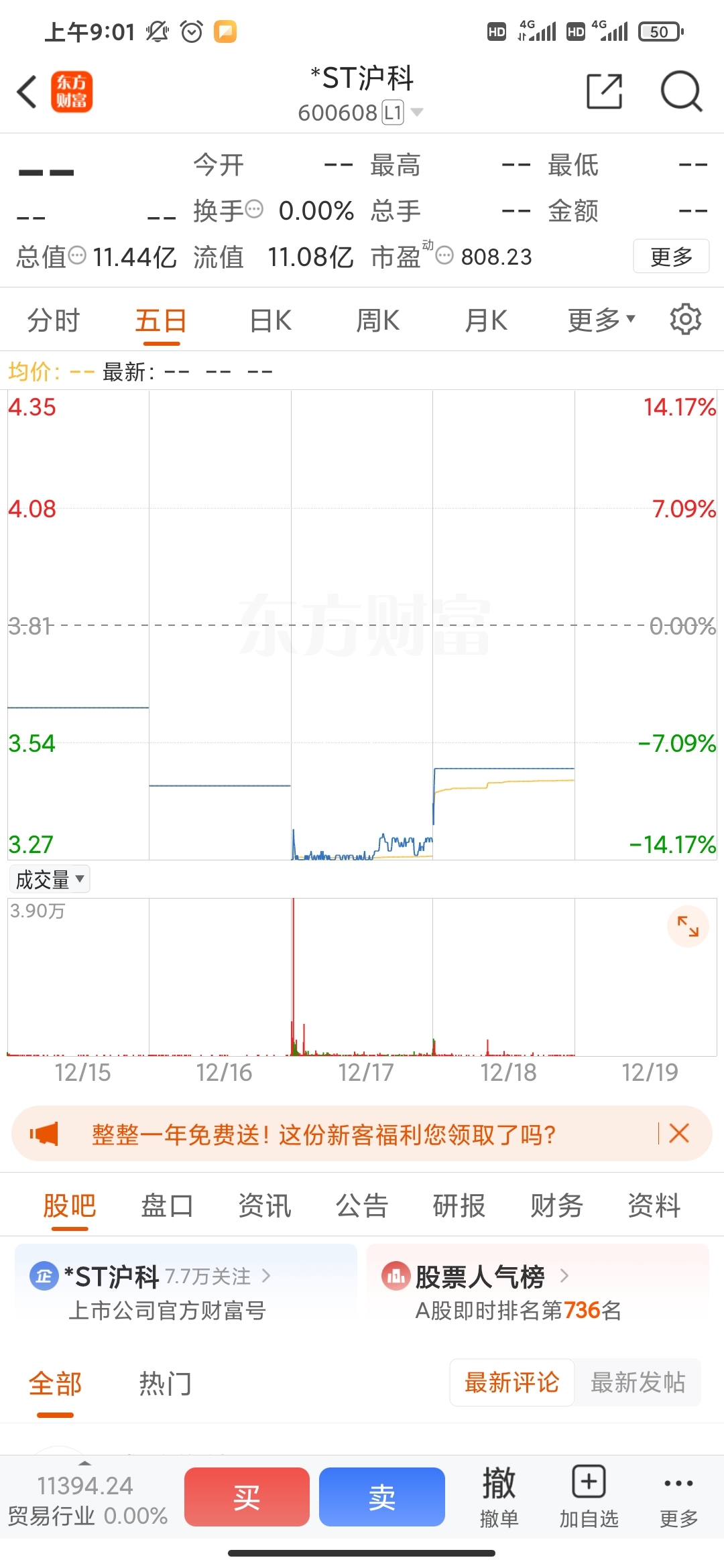 $*ST沪科(SH600608)$