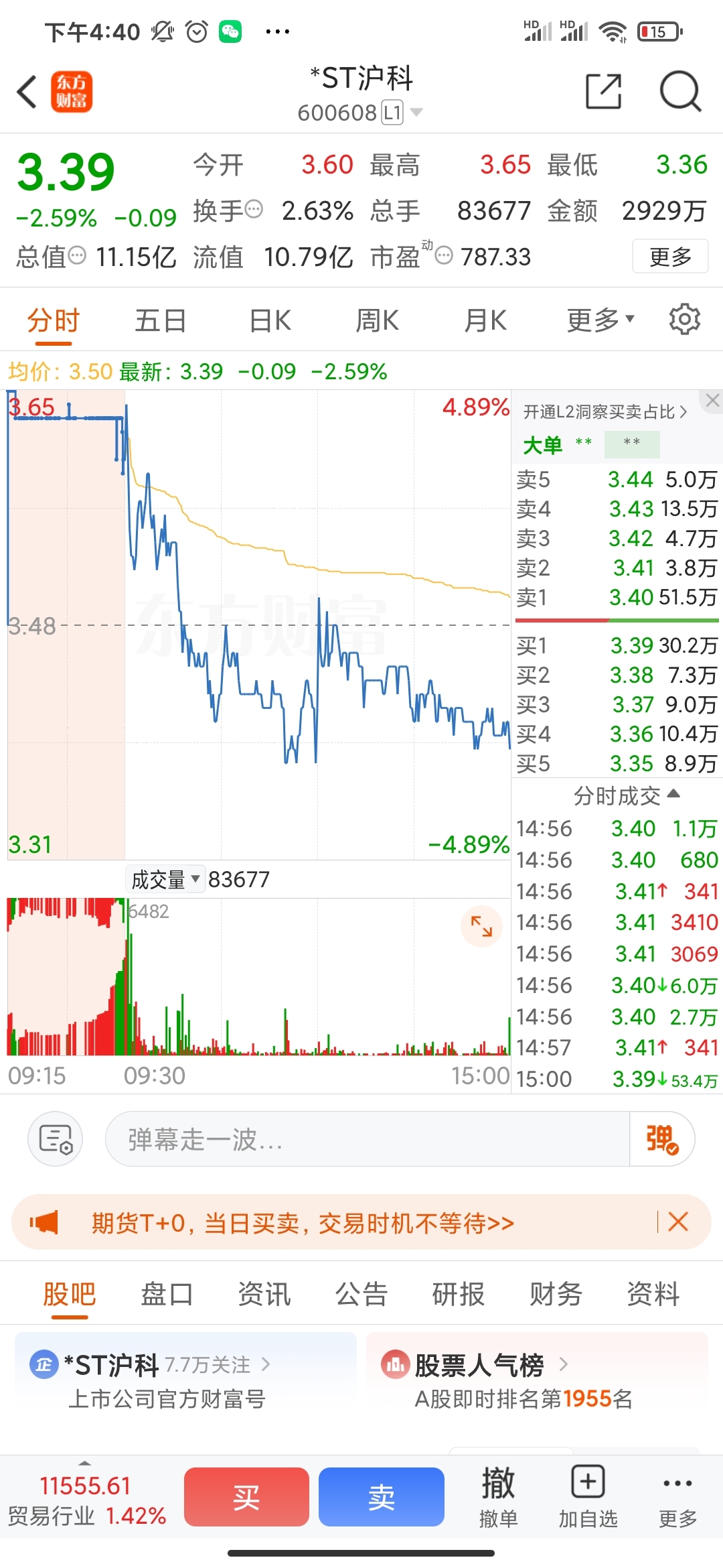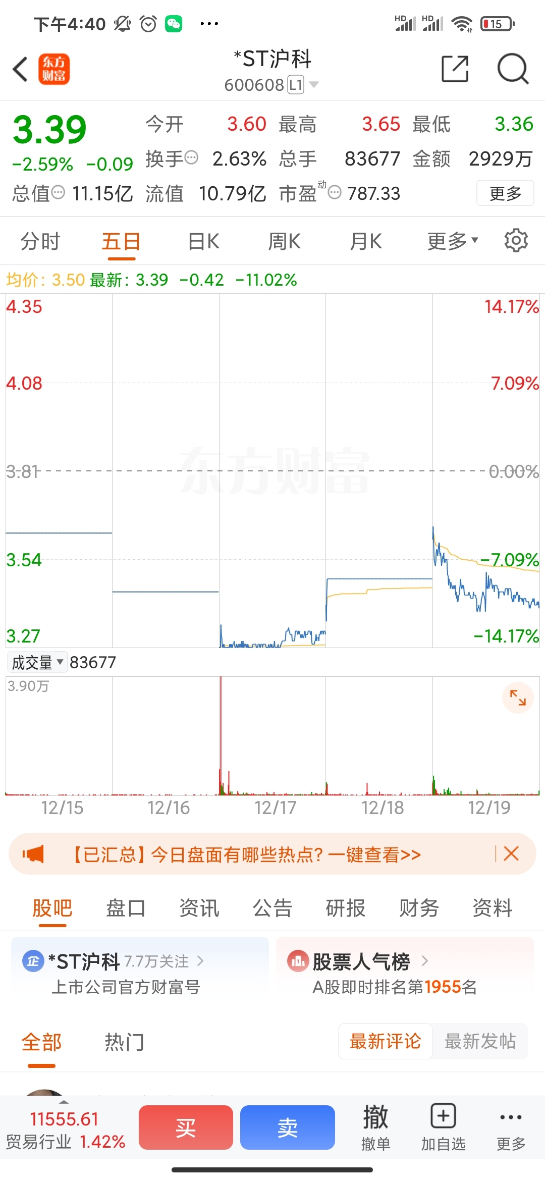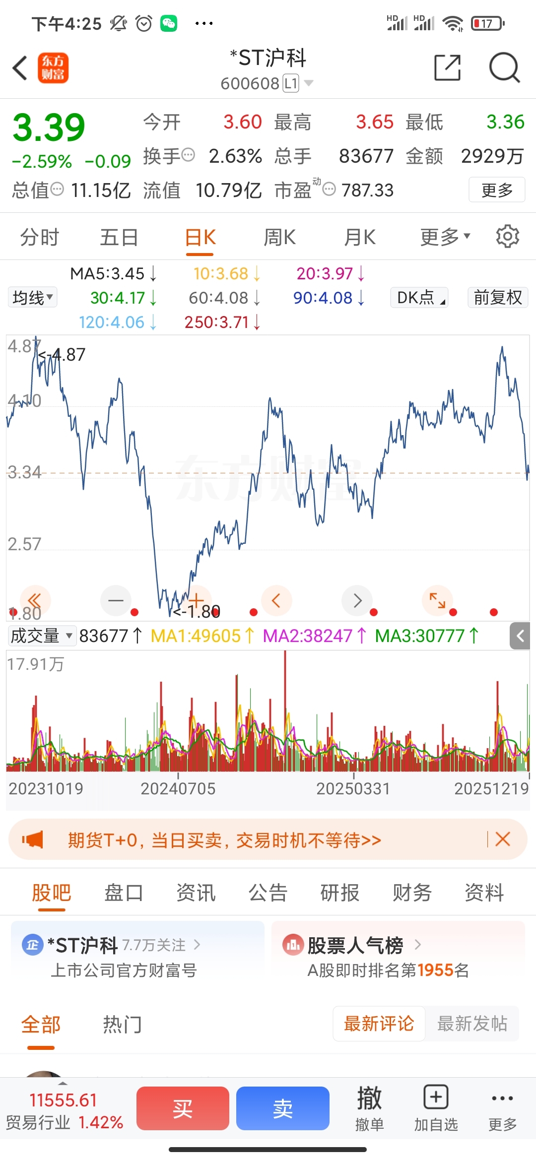 $*ST沪科(SH600608)$ 整体趋势向上下周低开高走