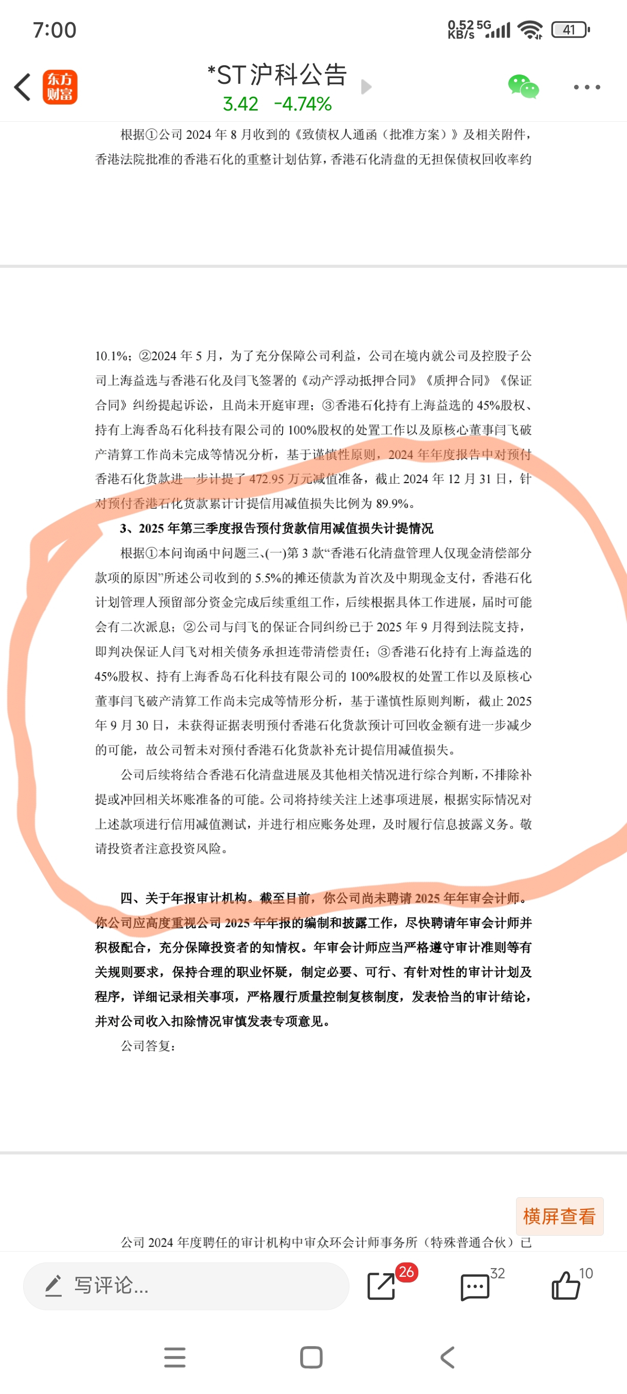 三季度不计提的充分证据已经说过了。至于风险提示,是监管让充分提示风险。目前没有证